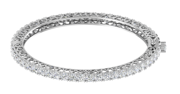 17.32 Ctw Round Cut Diamond Bangle | Lattice Diamond Bangle Set In Luxury 14K White Gold