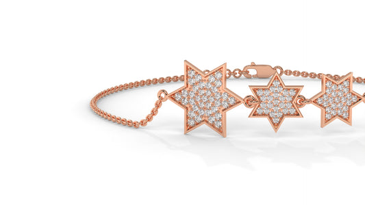 0.45 CTW Diamond Star Bracelet in 14K Rose Gold – Triple Star Pavé Design