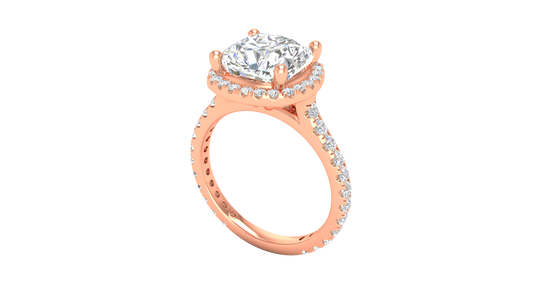 4 Carat Cushion-Cut Halo Engagement Ring With Pavé Diamond Band In 14K Rose Gold