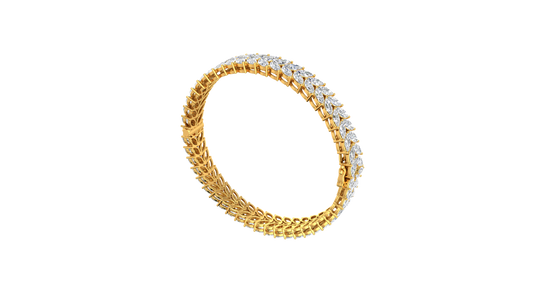 32.40 Ctw Round Cut Diamond Bangle | Double Row Pavé-Set Luxury Diamond Bangle Set In 14K Yellow Gold