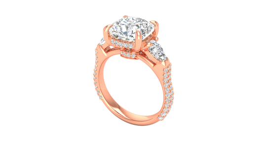 4 Carat Cushion-Cut Engagement Ring With Pear-Shaped Side Stones In 14K Rose Gold