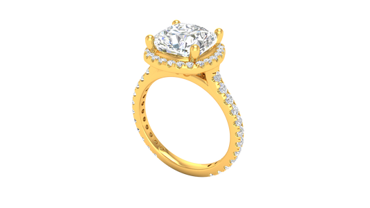 4 Carat Cushion-Cut Halo Engagement Ring With Pavé Diamond Band In 14K Yellow Gold