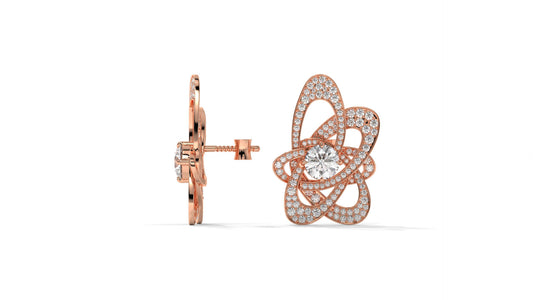 4.31 CTW Round Diamond Designer Stud Earrings in 14K Rose Gold In Pavé Setting