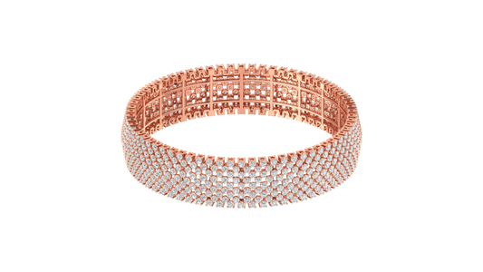 41.58 Ctw Round Cut Diamond Bangle | Wide Pavé Diamond Bangle Set In Luxury 14K Rose Gold