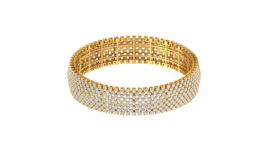 41.58 Ctw Round Cut Diamond Bangle | Wide Pavé Diamond Bangle Set In Luxury 14K Yellow Gold