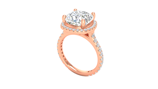 5 Carat Cushion Cut Halo Engagement Ring With Pavé Diamond Band In 14K Rose Gold