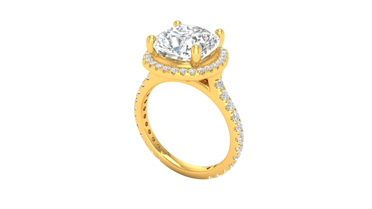 5 Carat Cushion Cut Halo Engagement Ring With Pavé Diamond Band In 14K Yellow Gold
