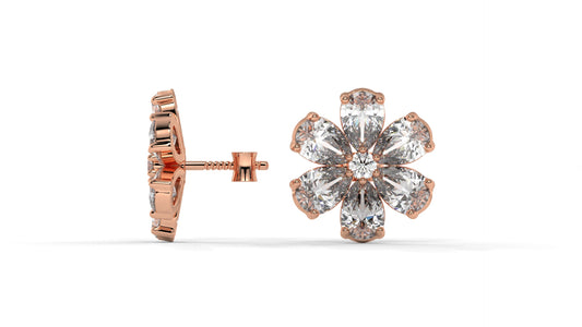 8.14 CTW Diamond Flower Stud Earrings in 14K Rose Gold - Pear-Shaped Cluster Design