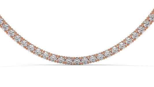 7.50 CTW Diamond Tennis Necklace in 14K Rose Gold – Classic Round Cut Single Row In 17 Inch