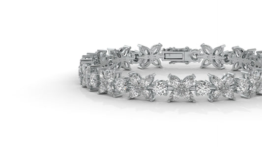 9.74 CTW Diamond Floral Bracelet in 14K White Gold - Elegant Nature-Inspired Design