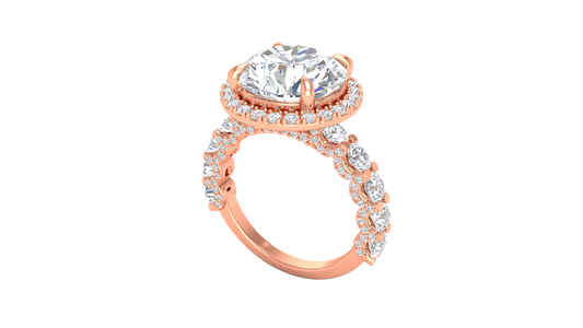 Opulent 5.00 Carat Round-Cut Halo Engagement Ring With Pavé Diamond Band In 14K Rose Gold