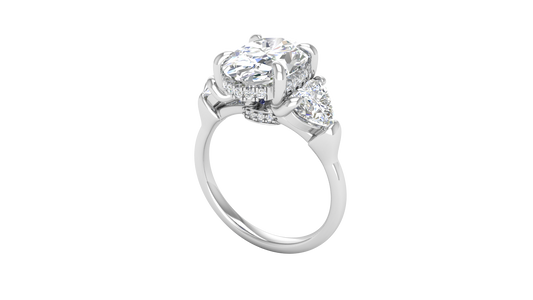 3 Carat Oval Cut Engagement Ring With Heart Shape Side Stones In 14K White Gold