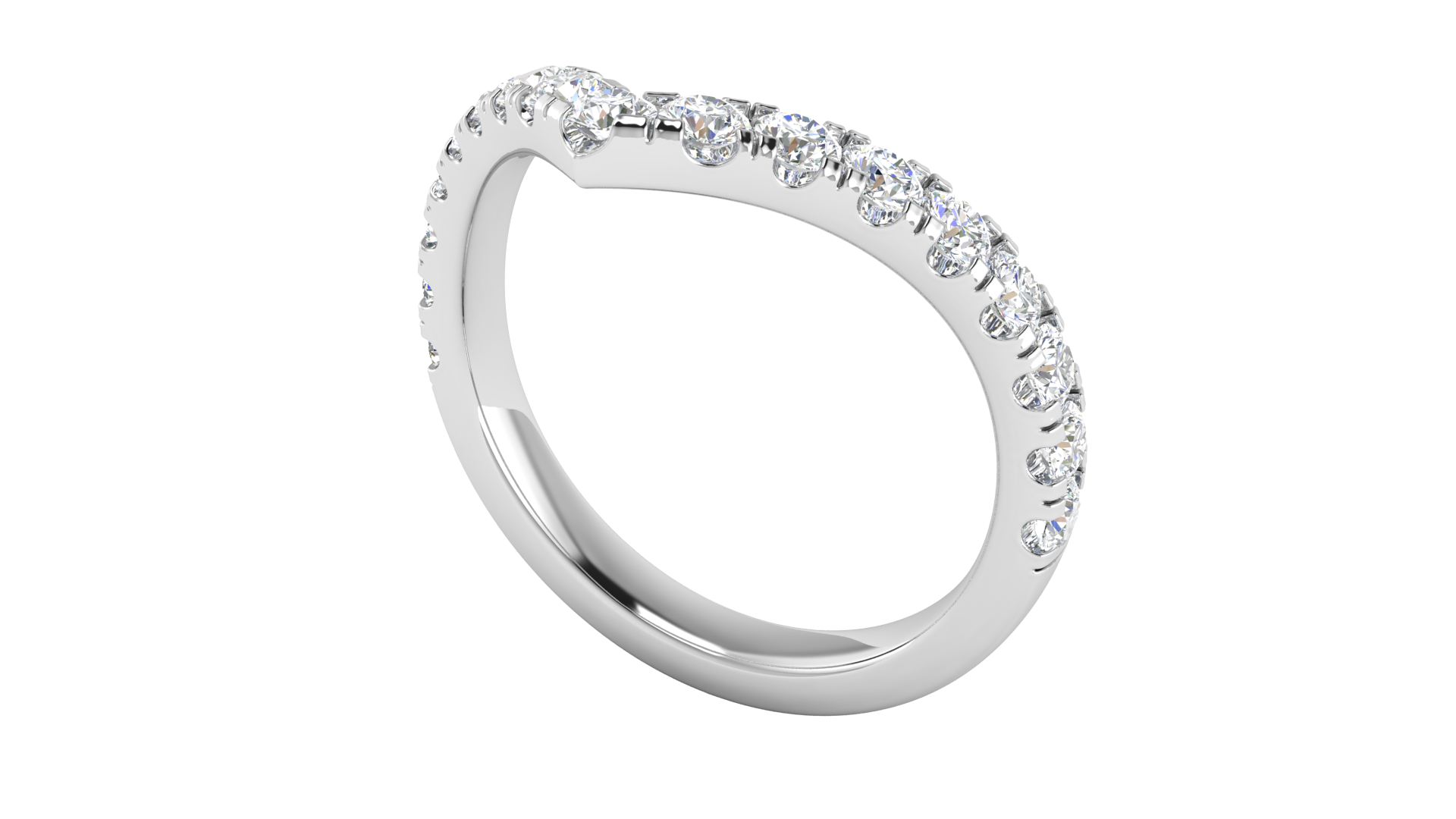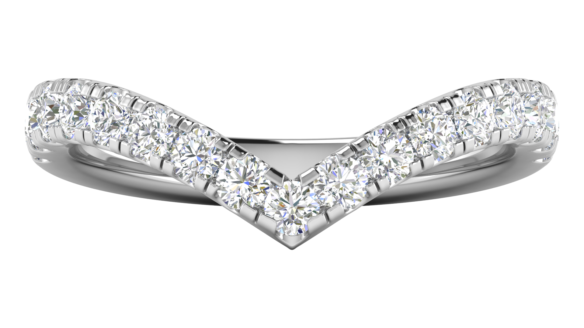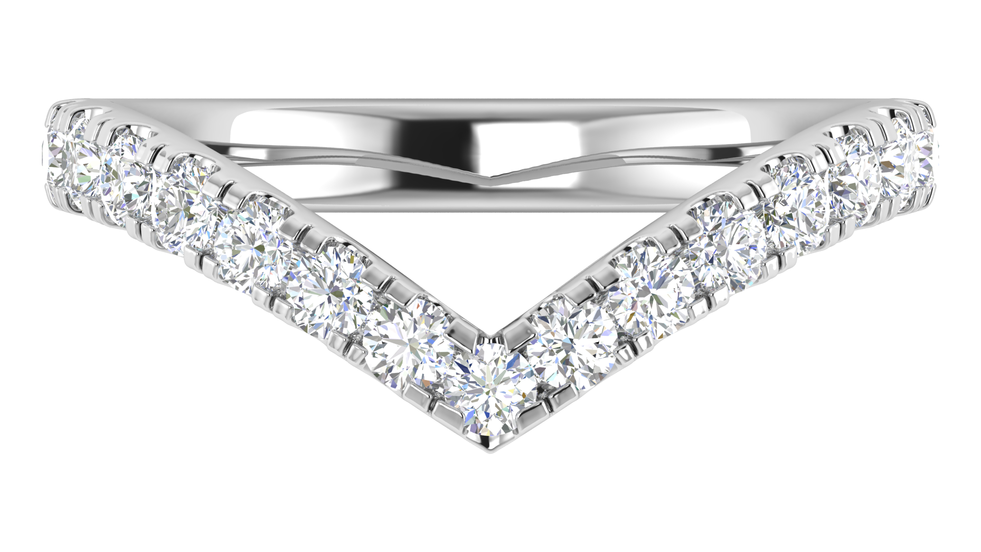 Elevate your style with this exquisite diamond chevron ring. Featuring a graceful "V" shape design, this ring is adorned with dazzling round-cut diamonds that sparkle brilliantly. Crafted from high-quality white gold, it exudes modern sophistication and versatility. Perfect for stacking with engagement or wedding bands or wearing as a standalone statement piece, this ring is a timeless addition to any jewelry collection. Celebrate life's special moments with this sleek and elegant design.