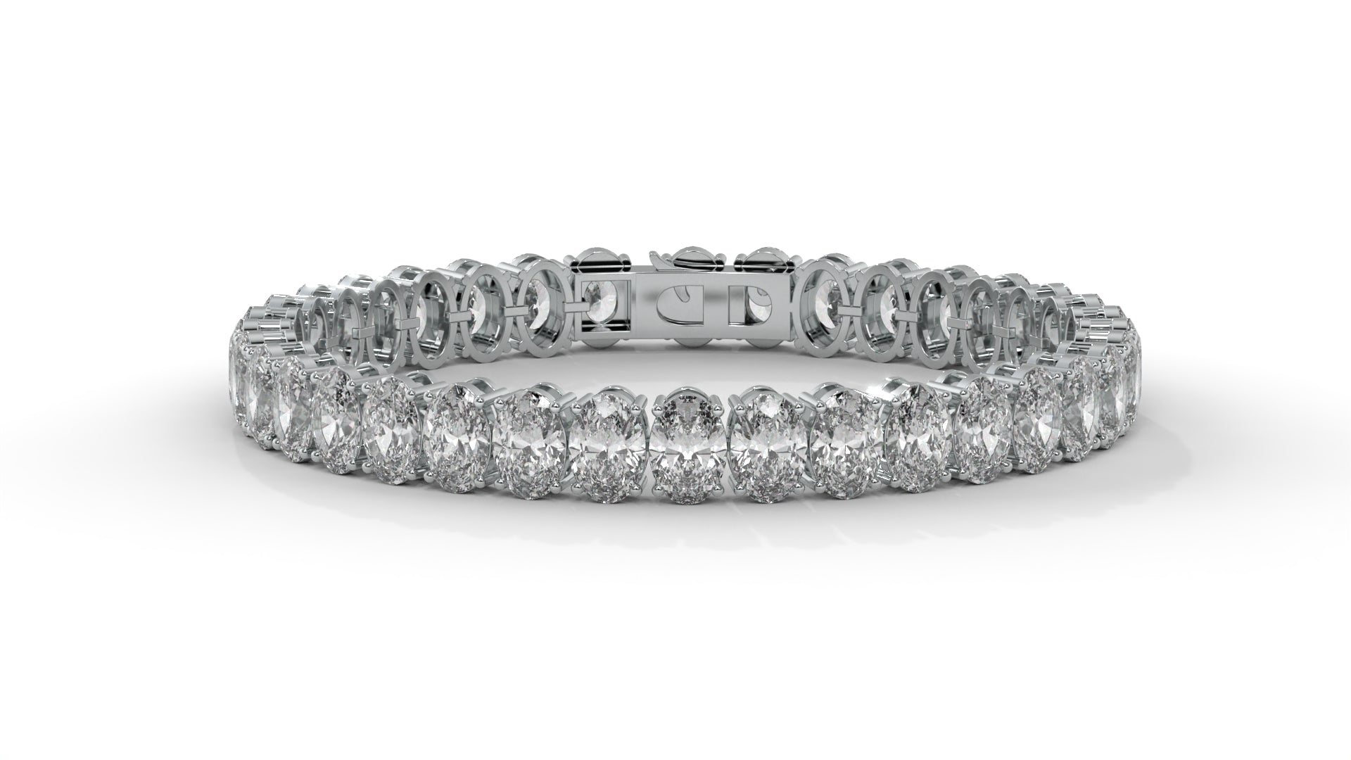 This 23.40 carat total weight diamond bracelet is crafted in 14K white gold and showcases a continuous line of dazzling oval-cut diamonds. Each stone is expertly set to highlight its brilliance and fire, creating a bold, elegant statement piece. Designed for those who appreciate the finest in diamond jewelry, this oval diamond bracelet is perfect for red carpet occasions, milestone celebrations, or as a luxury heirloom to treasure for generations.