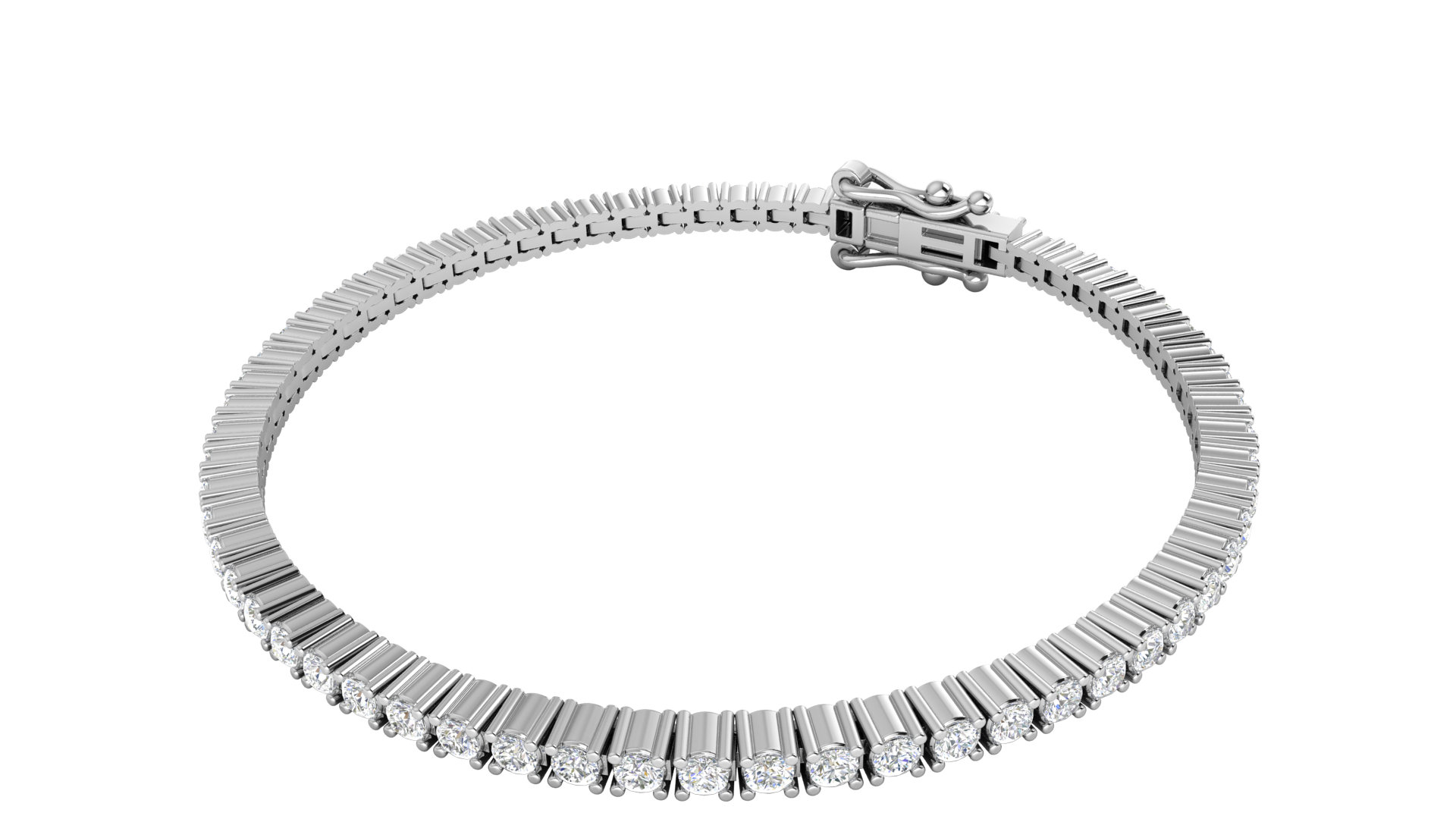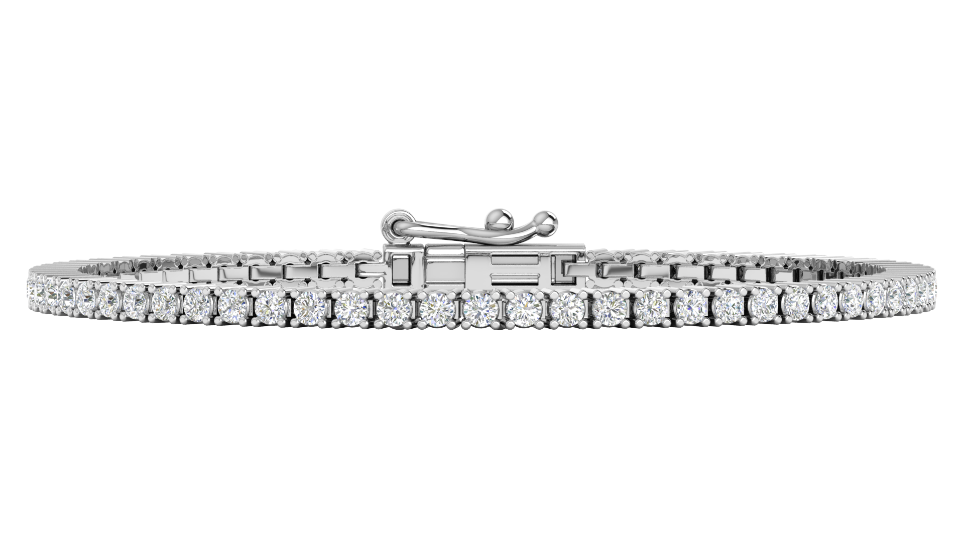 Fashioned from 14K white gold, this luxurious tennis bracelet is adorned with a series of round brilliant-cut diamonds. These diamonds, precisely set in prongs, highlight their dazzling beauty and exceptional quality, boasting VS clarity and F color. With a sturdy clasp to provide a secure fit, this bracelet is perfect for elevating your style with its timeless elegance.