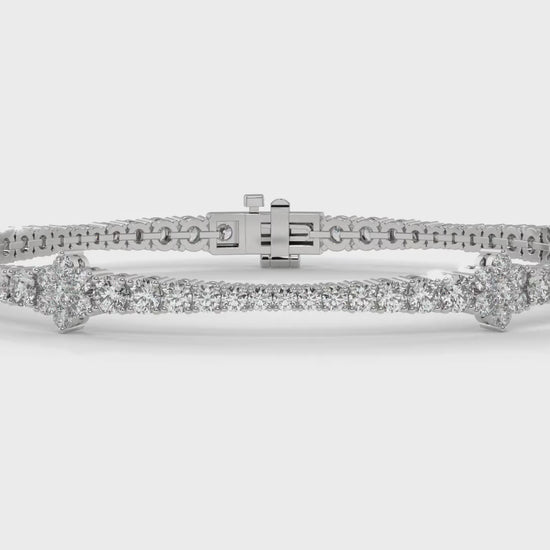 This 4.95 carat total weight diamond tennis bracelet is crafted in 14K white gold, featuring a continuous line of brilliant round-cut diamonds that deliver exceptional sparkle and elegance. The classic yet refined design includes secure prong settings and a box clasp, ensuring both comfort and durability for daily wear or special occasions. A timeless diamond bracelet, it’s the perfect gift for anniversaries, milestones, or simply as a luxurious addition to your jewelry collection.