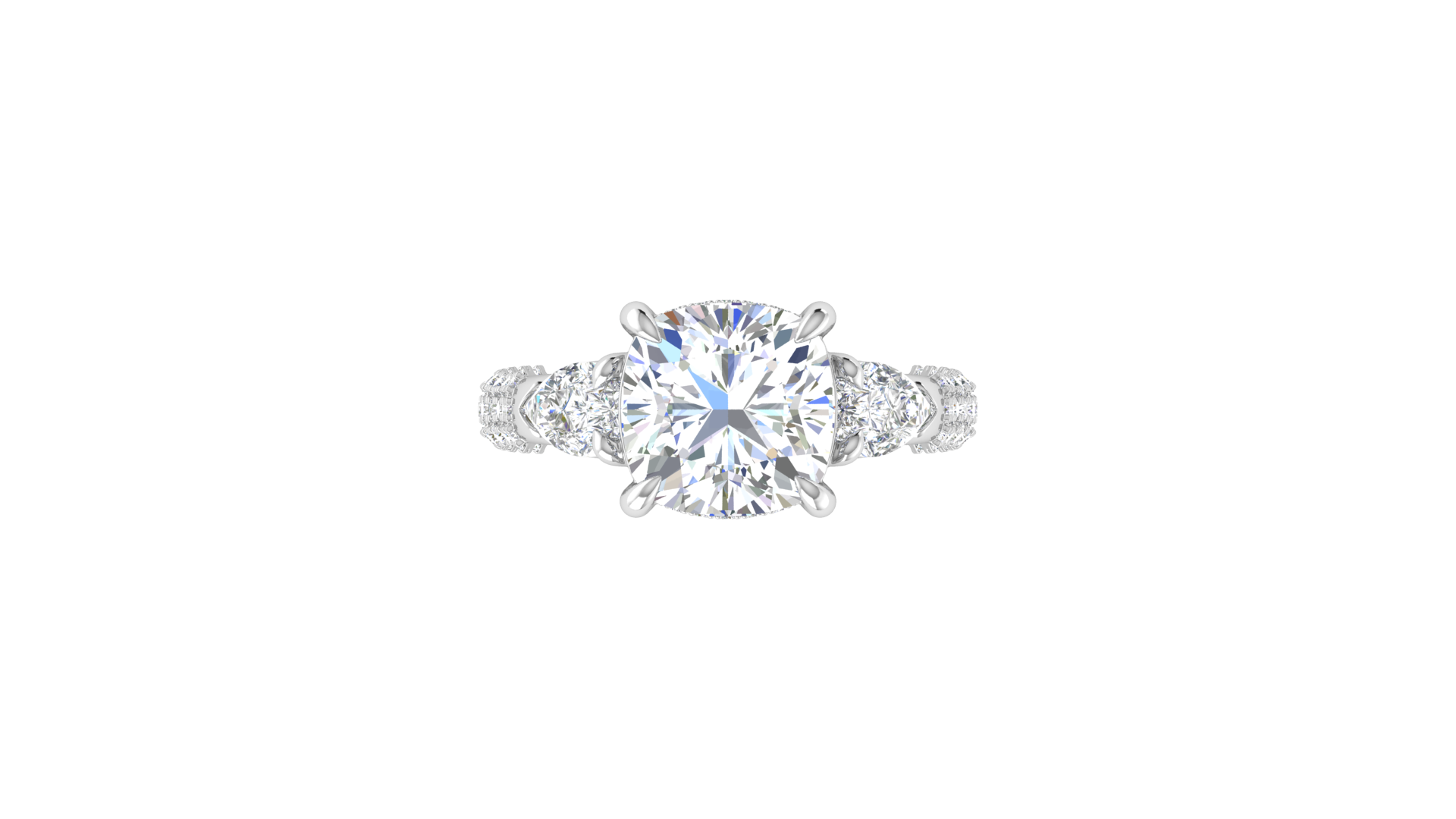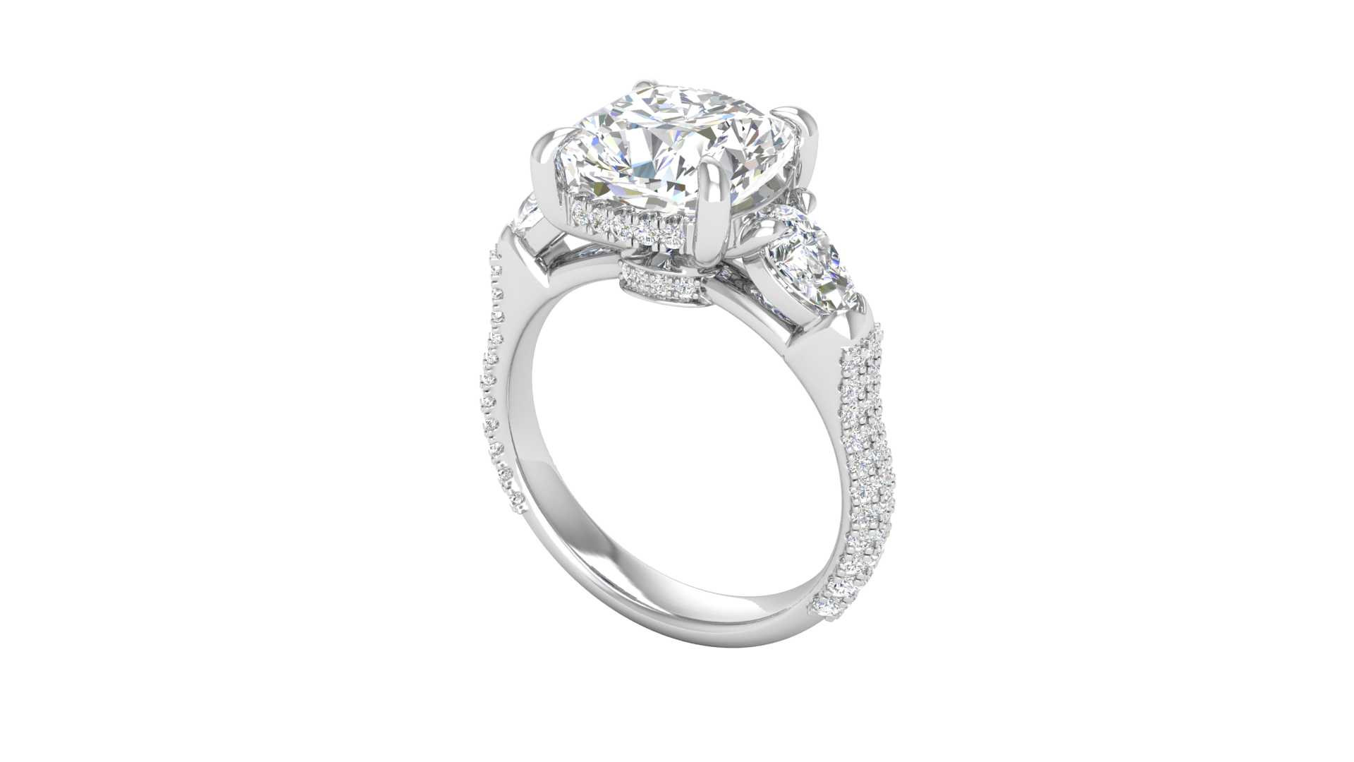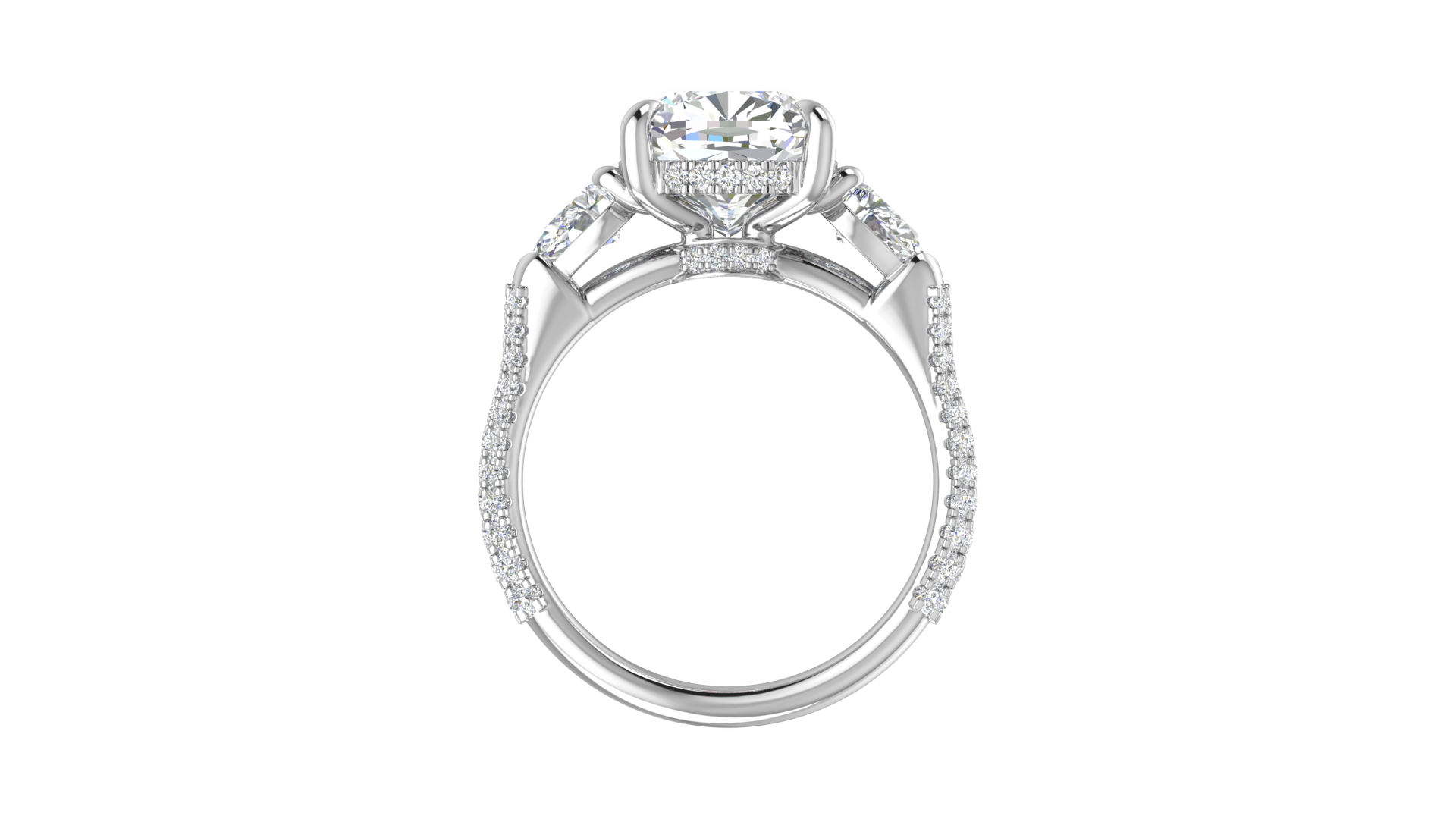 4 Carat Cushion-Cut Engagement Ring With Pear-Shaped Side Stones In 14K White Gold