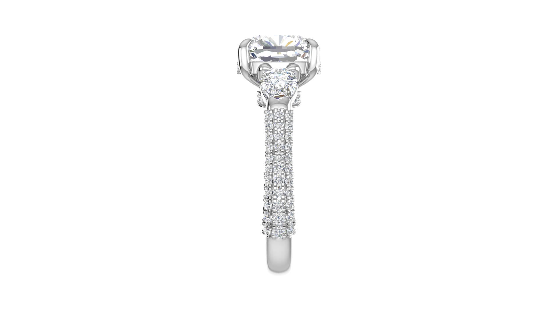 Celebrate your love with our magnificent 4-carat cushion-cut diamond engagement ring, featuring a dazzling 4ct center diamond, pear-shaped side stones, and a three row pavé-set diamond band. This 14k white... Show More