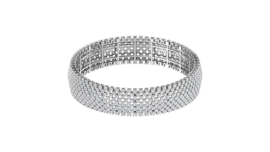 17.32 Ctw Round Cut Diamond Bangle | Lattice Diamond Bangle Set In Luxury 14K White Gold