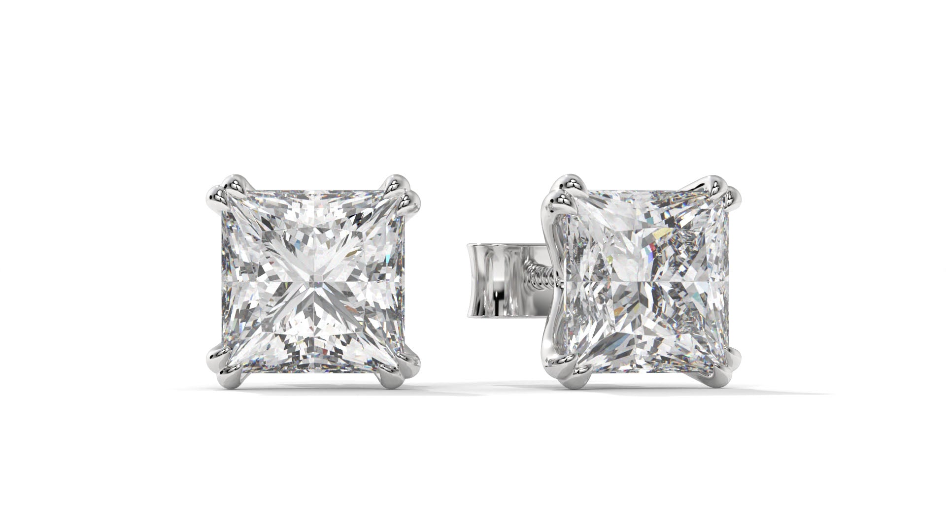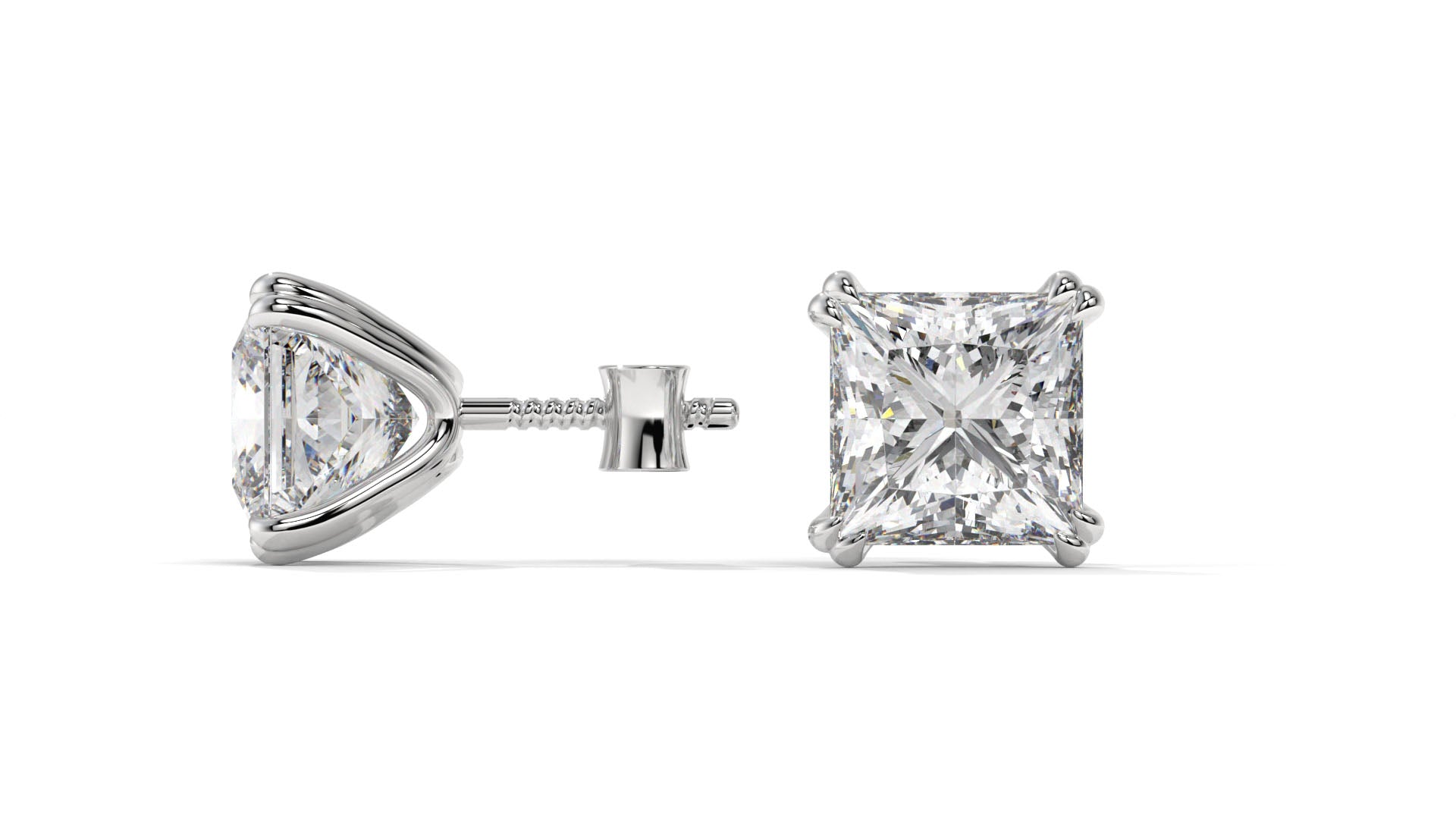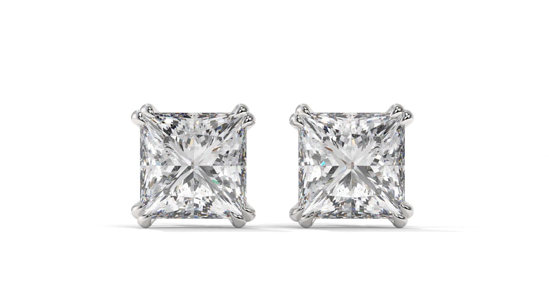 3 CTW Princess-Cut Diamond Stud Earrings In 14K White Gold – Four-Prong Setting