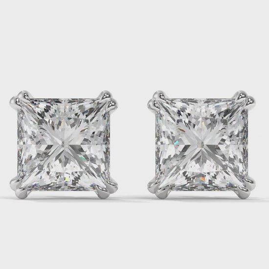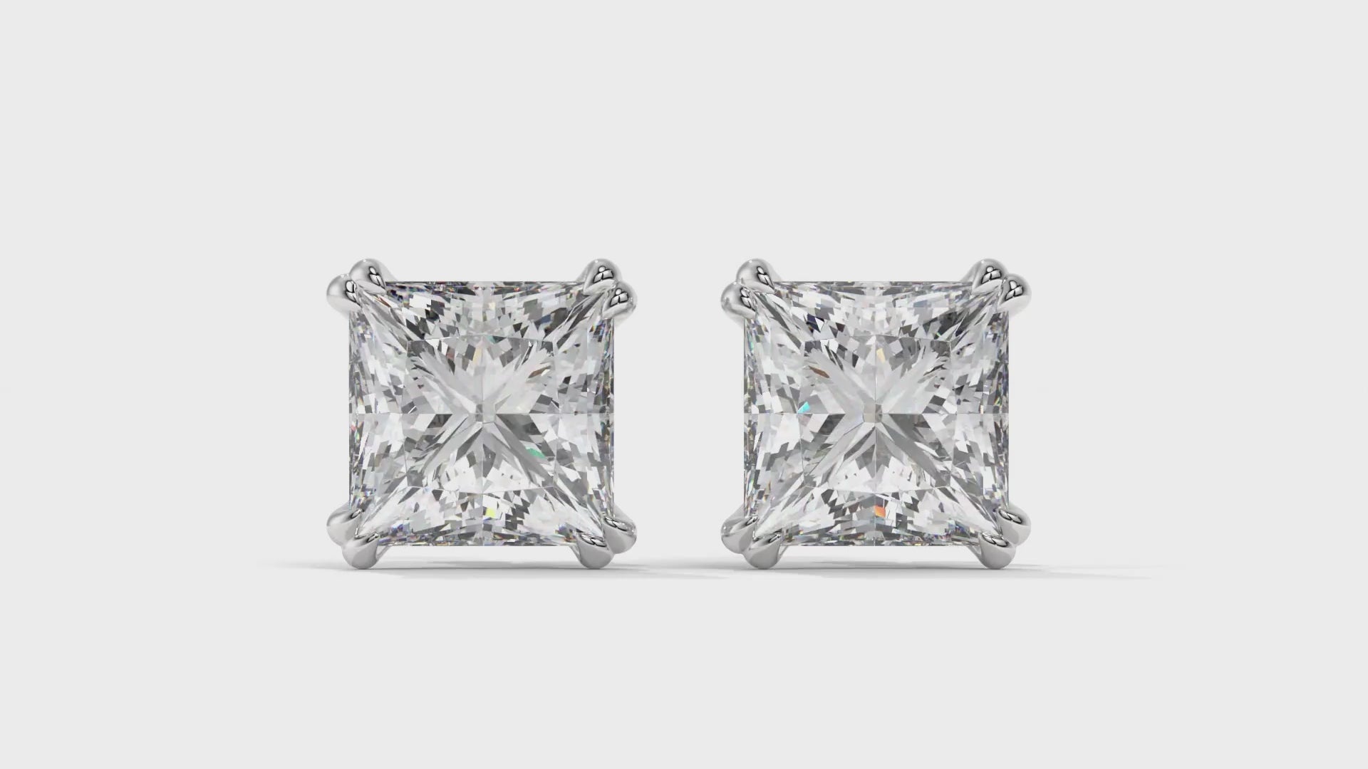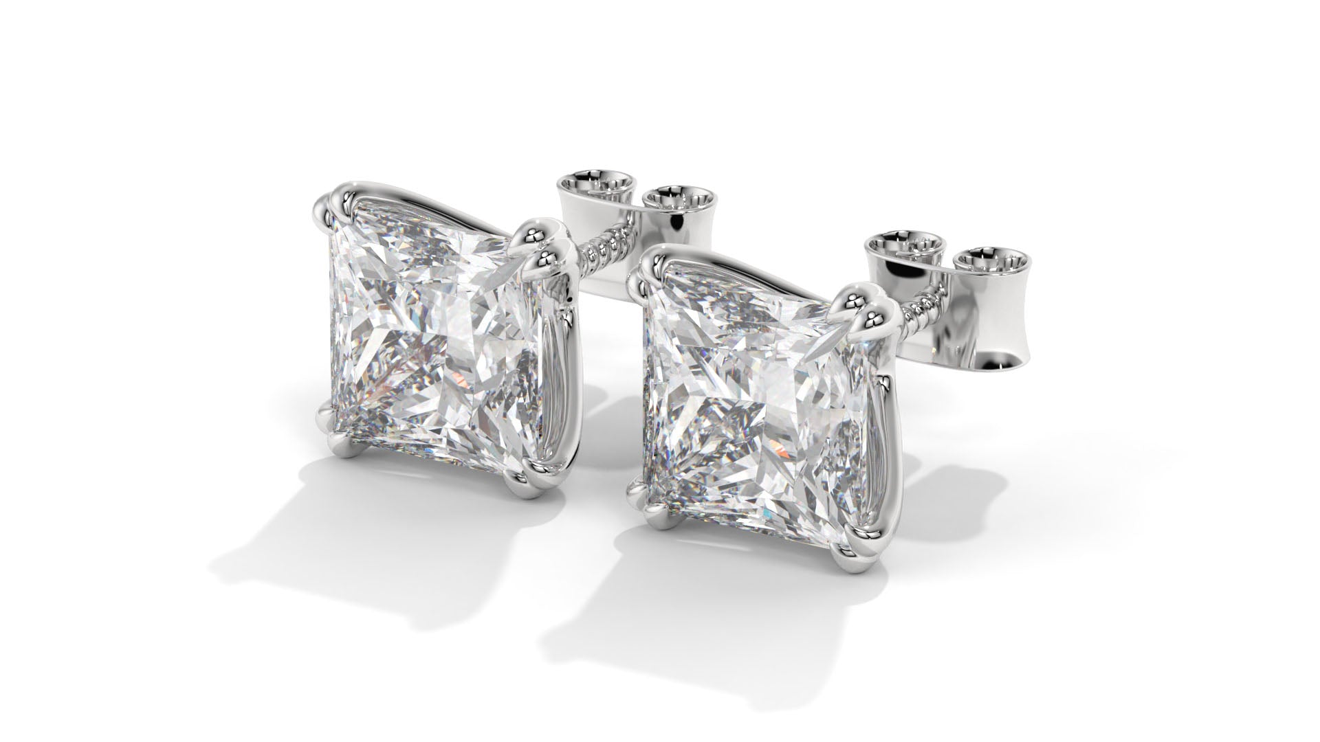 3 CTW Princess-Cut Diamond Stud Earrings In 14K White Gold – Four-Prong Setting
