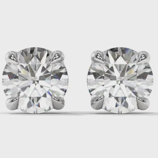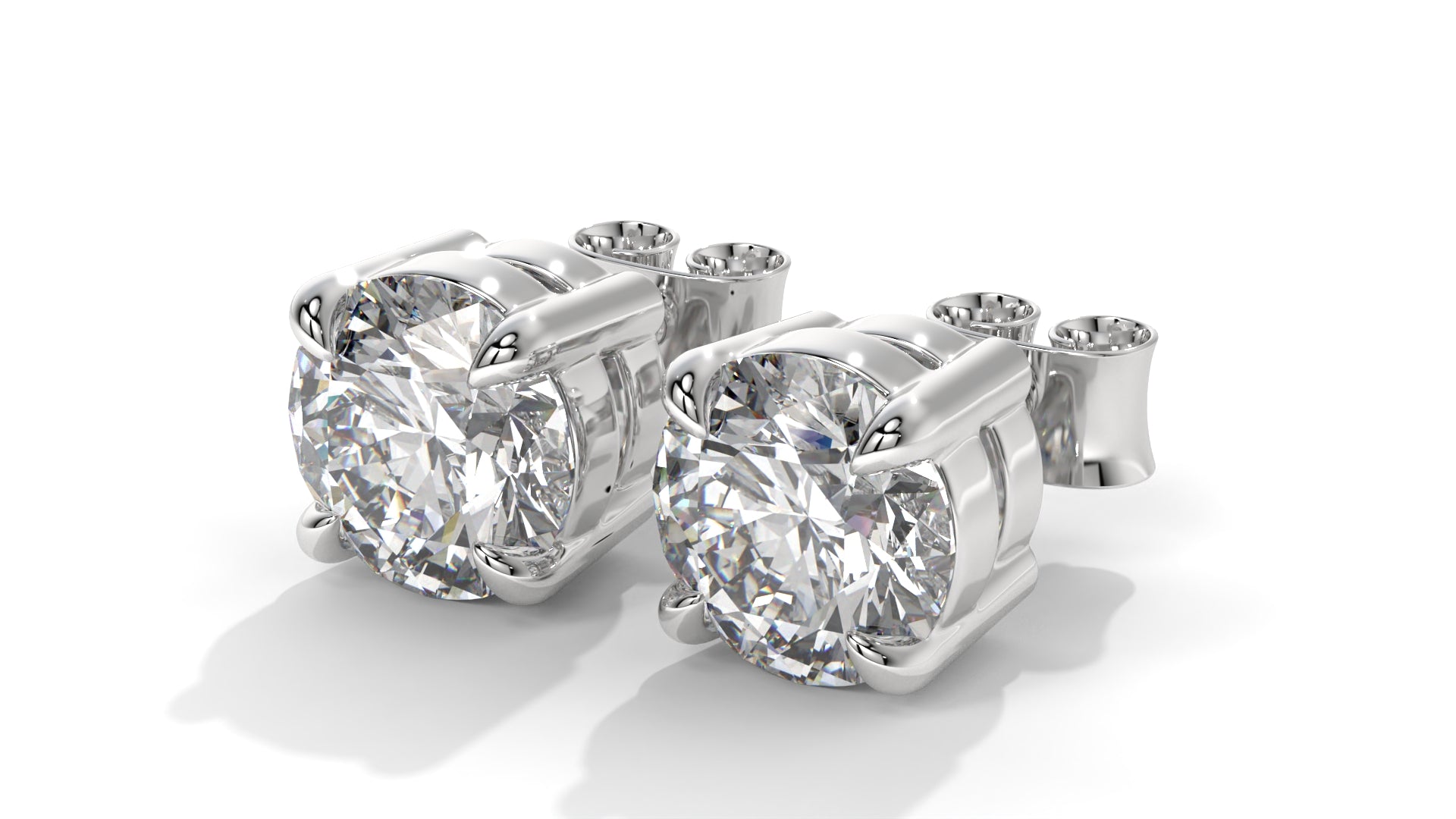 6 CTW Round Diamond Stud Earrings In 14K White Gold – Brilliant-Cut Solitaire, Four-Prong Setting