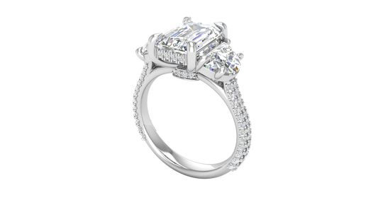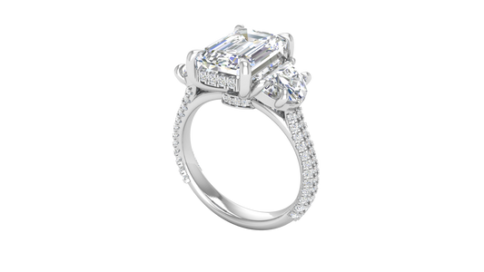 3 Carat Emerald Cut Engagement Ring With Half-Moon Side Stones In 14K White Gold