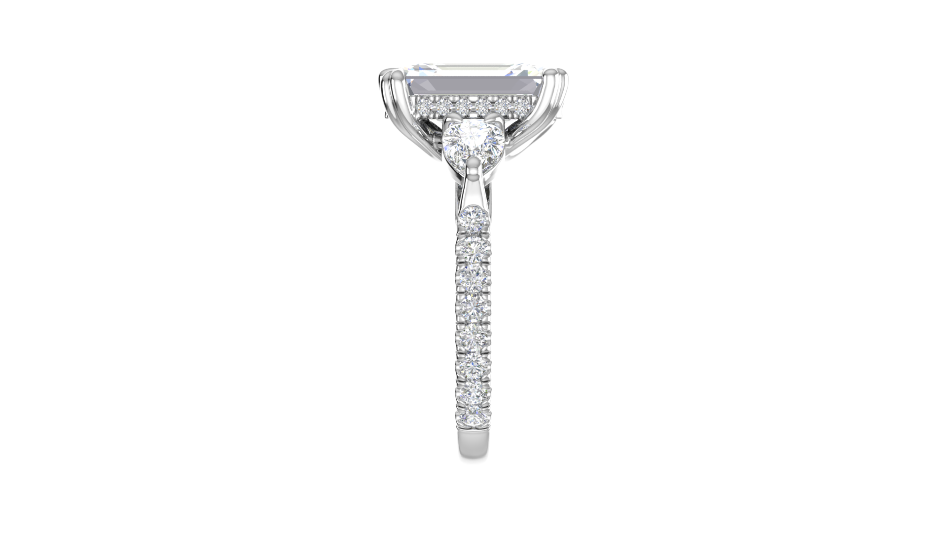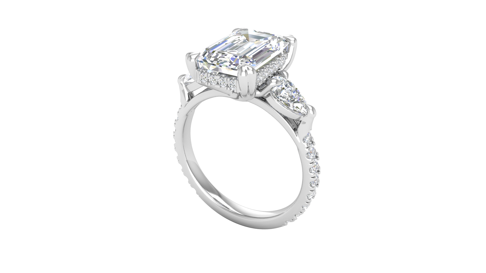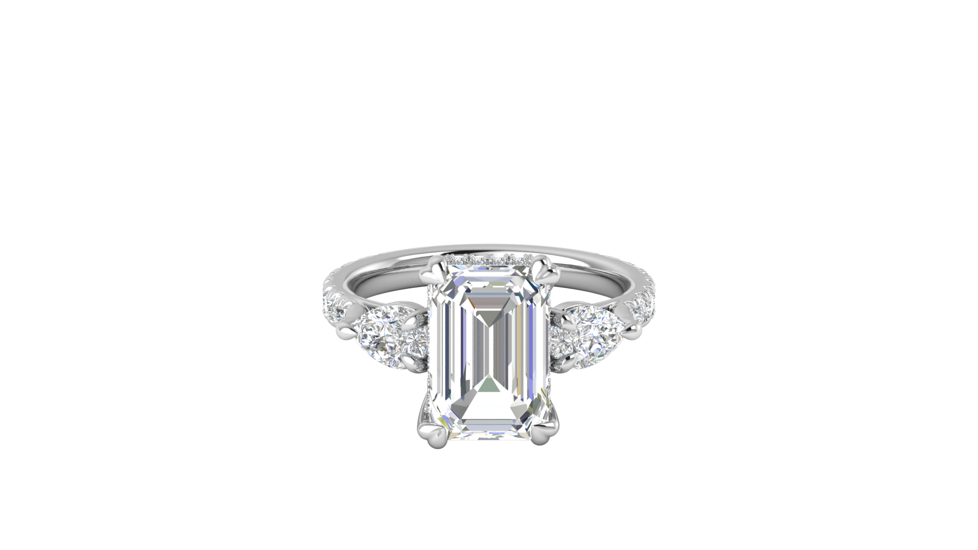 Experience unmatched luxury with this 4 Carat Emerald Cut Engagement Ring featuring a breathtaking emerald-cut center stone complemented by dazzling pear-shaped side stones. Set on a pavé diamond band and... Show More