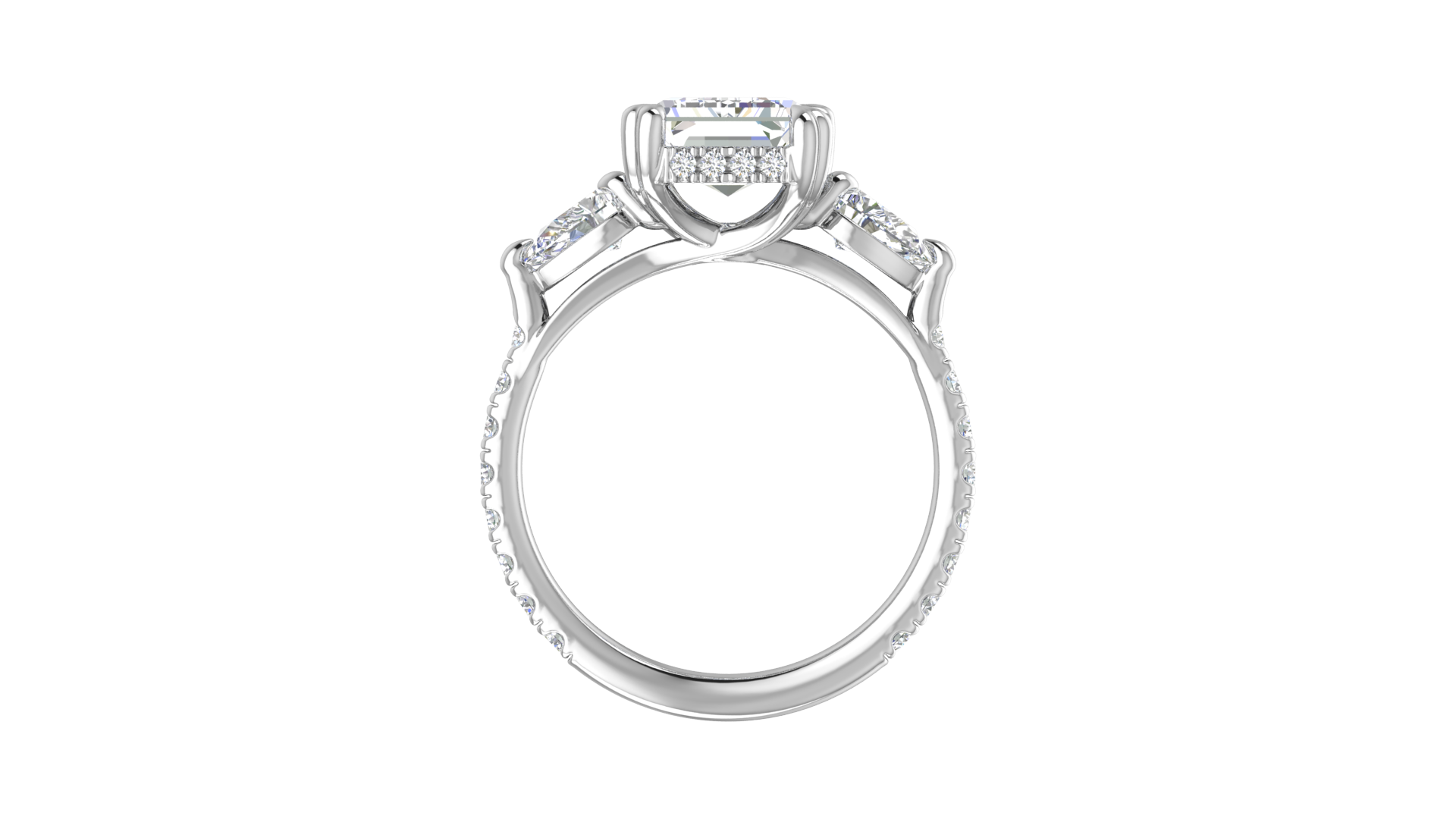 4 Carat Emerald Cut Engagement Ring With Pear Side Stones In 14K White Gold