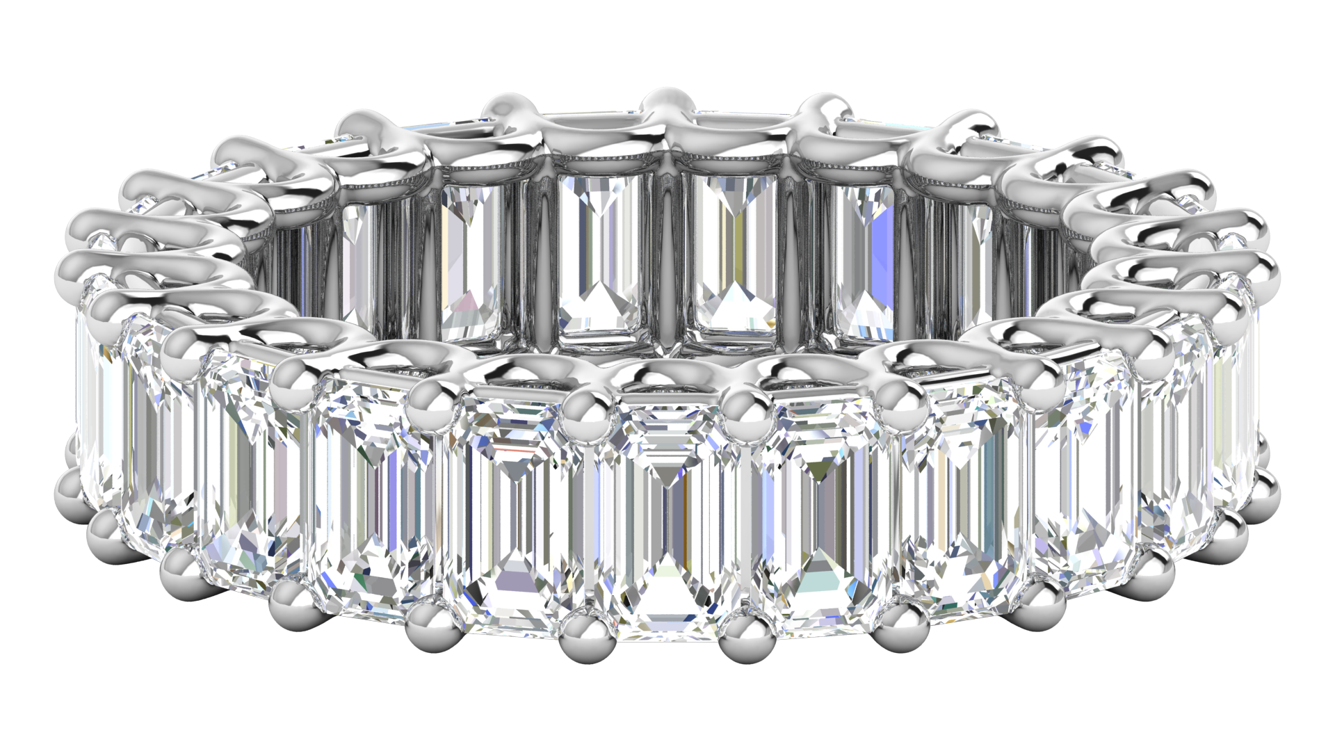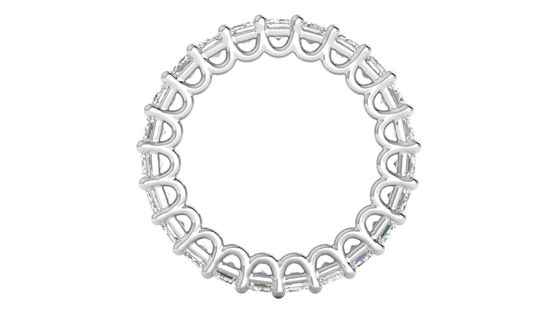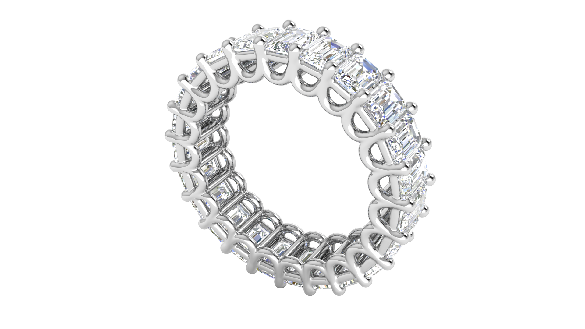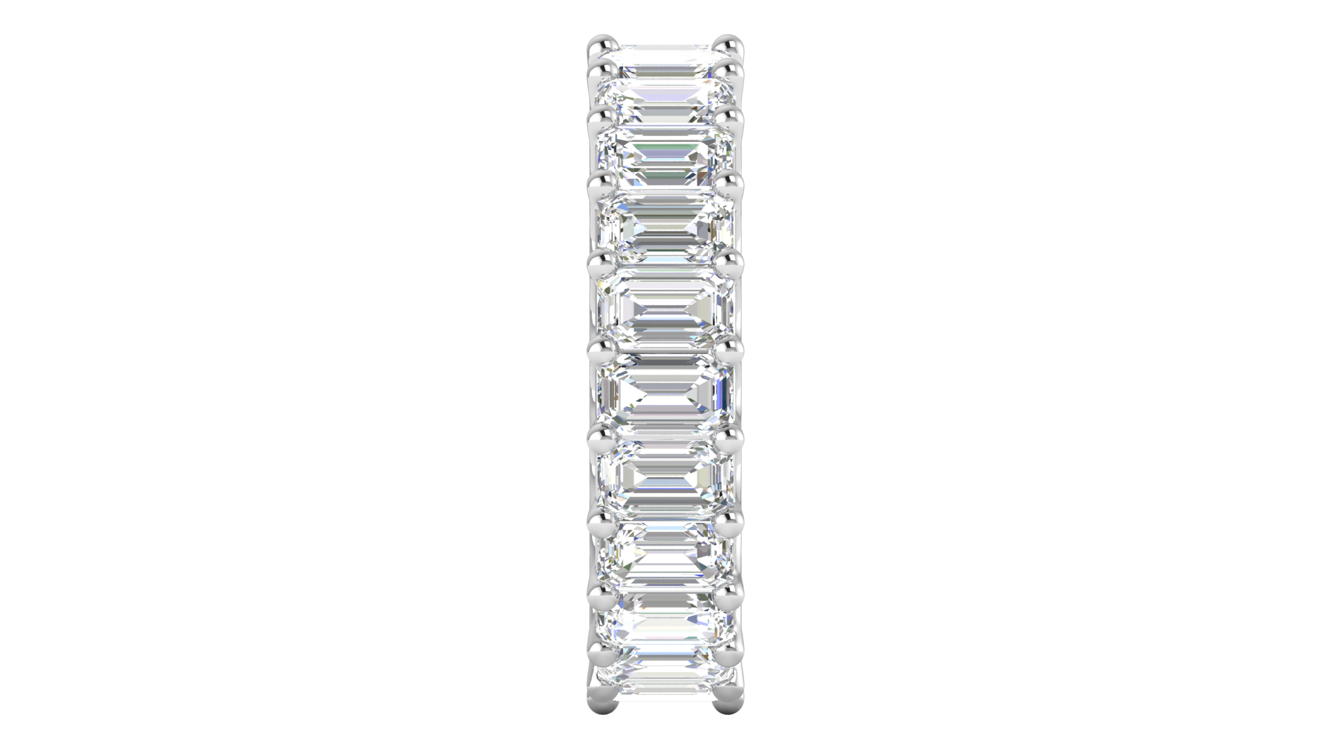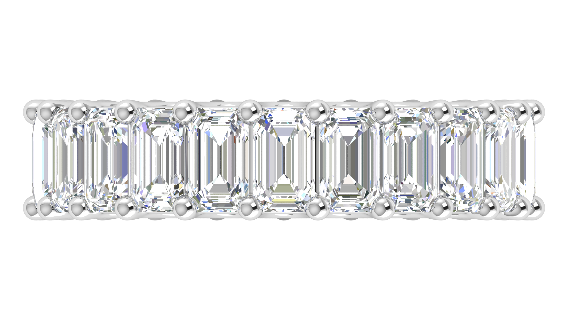 This luxurious eternity band features 6.90 carats of stunning emerald-cut diamonds, meticulously set in 14k white gold. Each diamond is elegantly prong-set to maximize brilliance and create a seamless, continuous... Show More