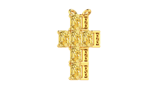 Made To Order Only6.00 Ctw Asscher Cut Yellow Diamond Cross Pendant In 14K Yellow Gold