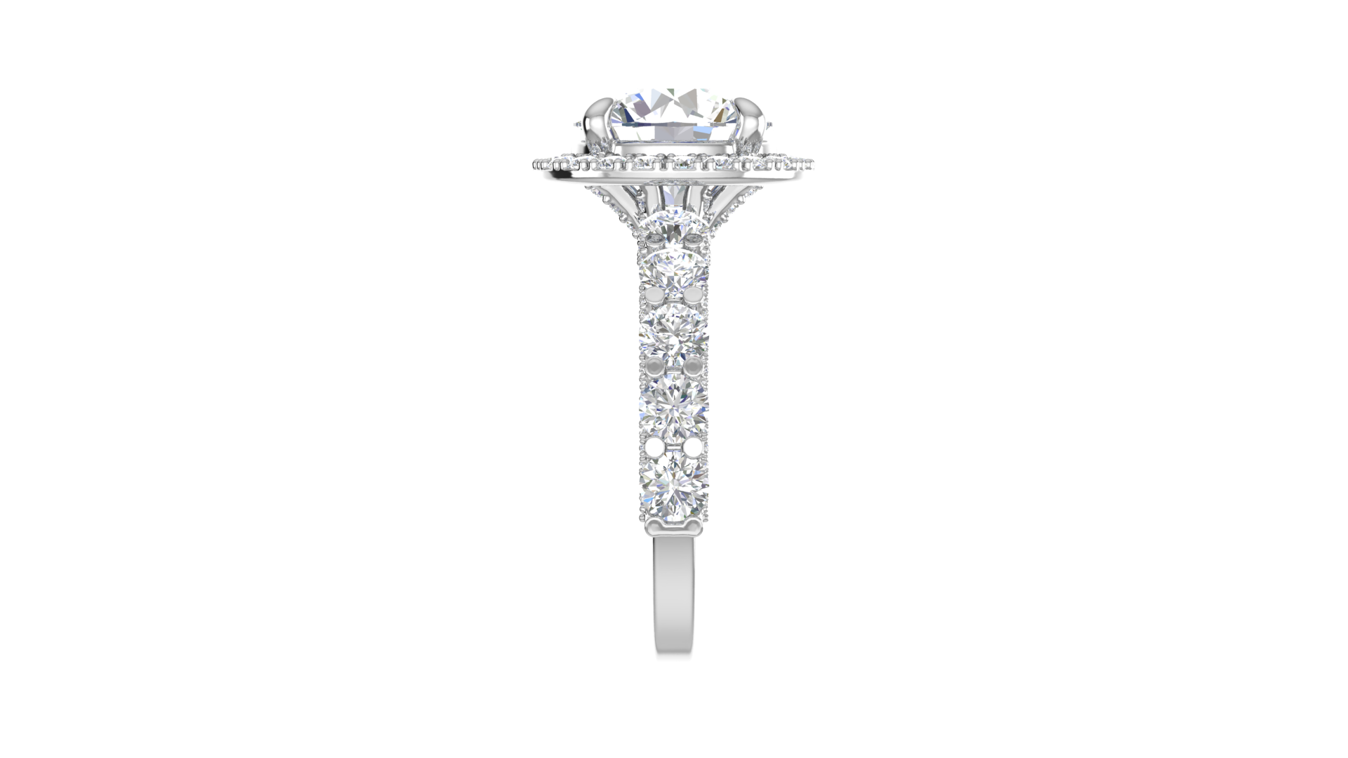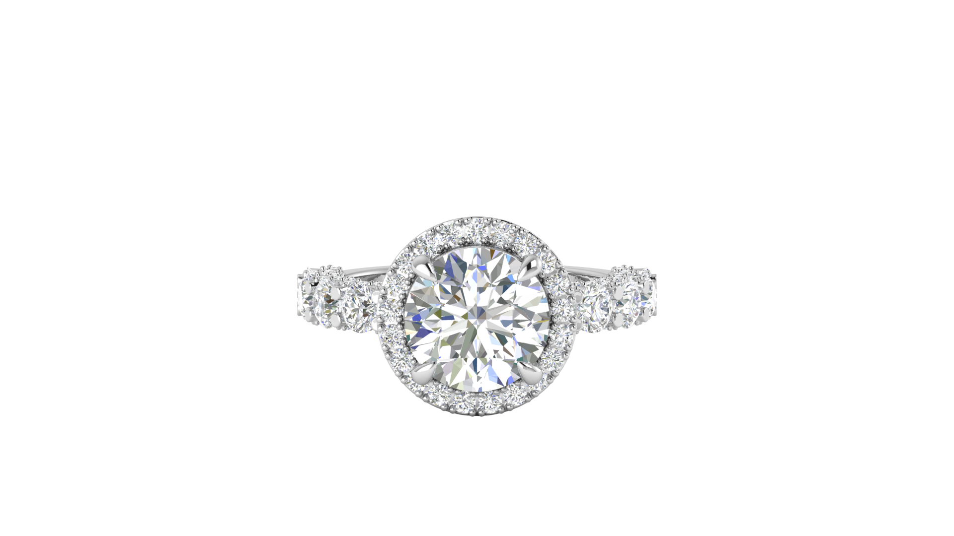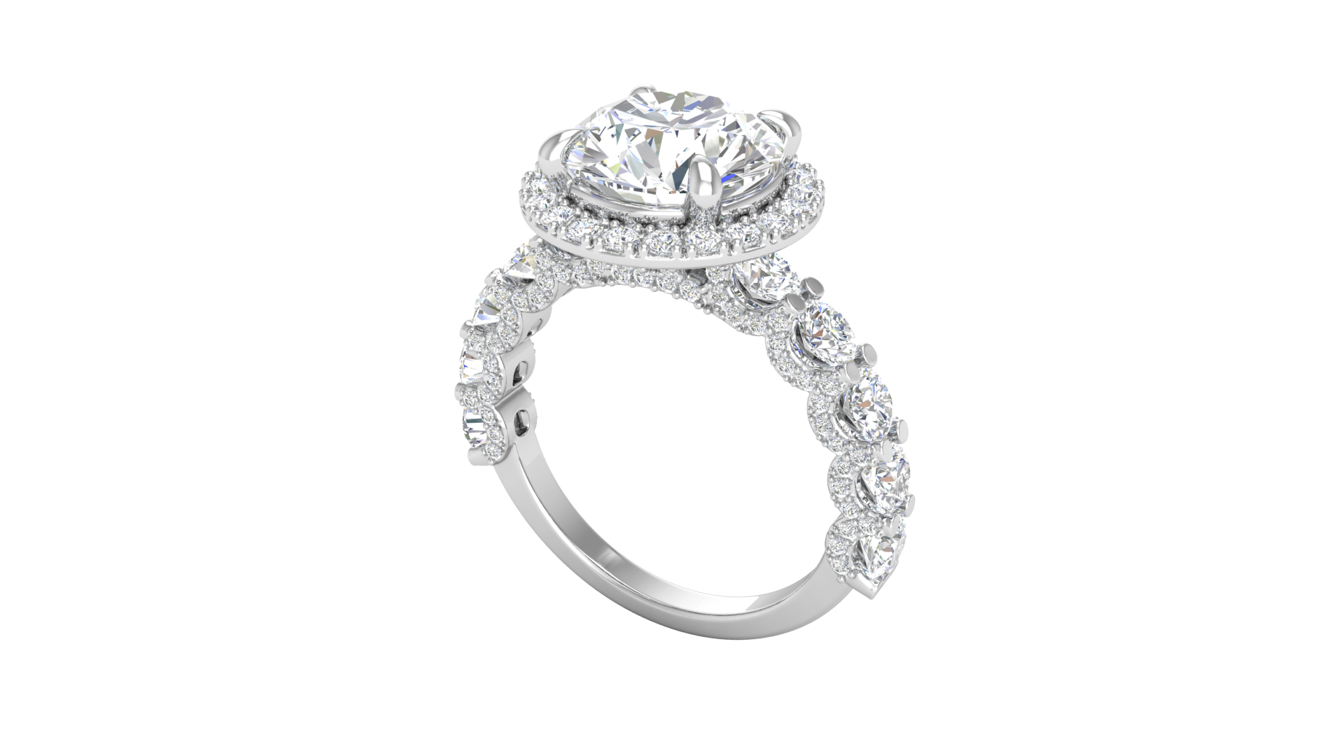 This exquisite 3.00 Ct Round Halo Engagement Ring is meticulously crafted to perfection. The centerpiece features a dazzling round-cut diamond, surrounded by a sparkling halo of smaller diamonds, enhancing its brilliance and charm. The band is adorned with additional diamonds, creating a timeless design that exudes elegance and sophistication.This ring is the perfect choice for a memorable proposal or special occasion.