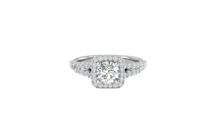 1.00 Carat Round-Cut Halo Engagement Ring With Pavé Diamond Band In 14K White Gold