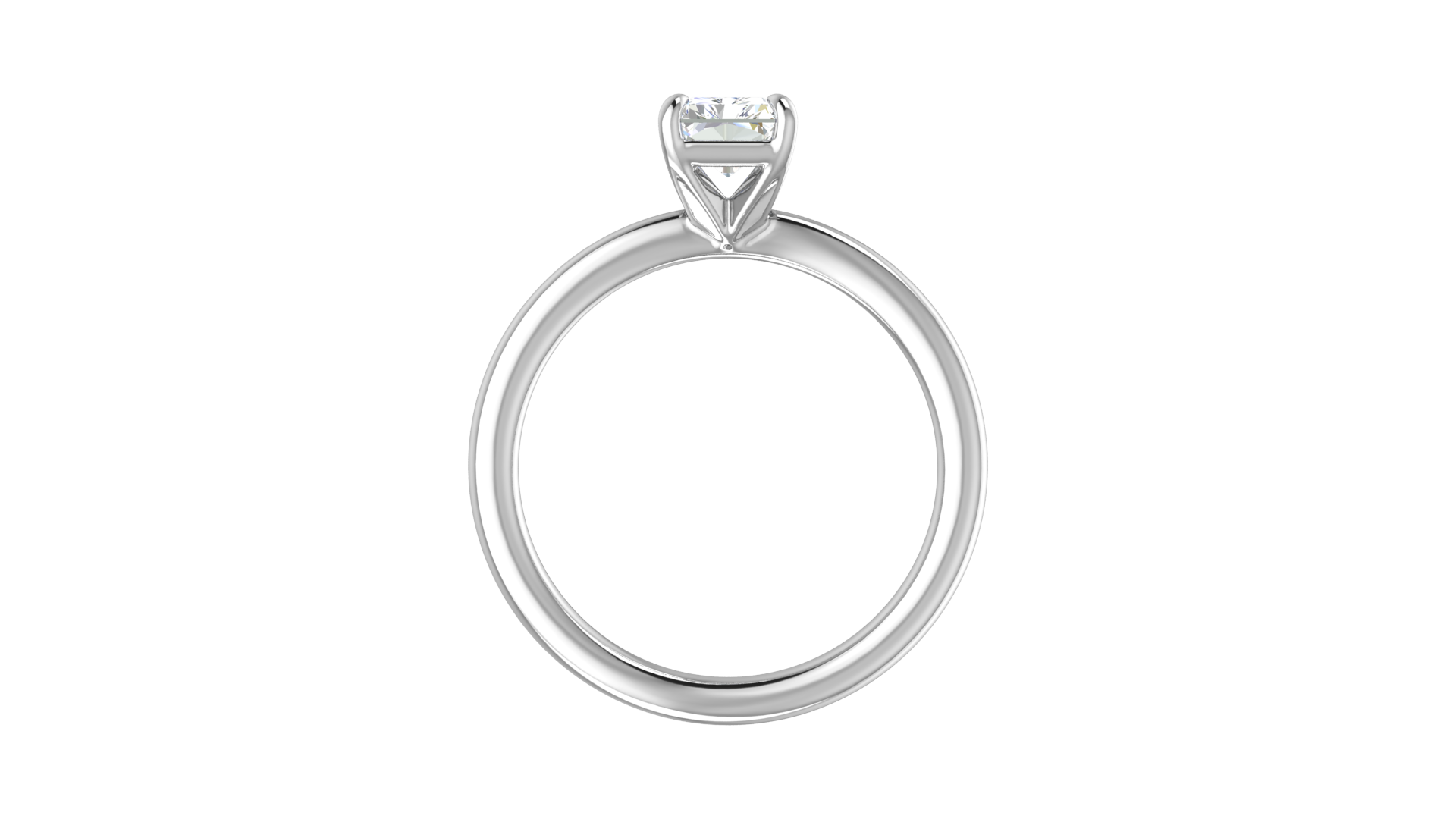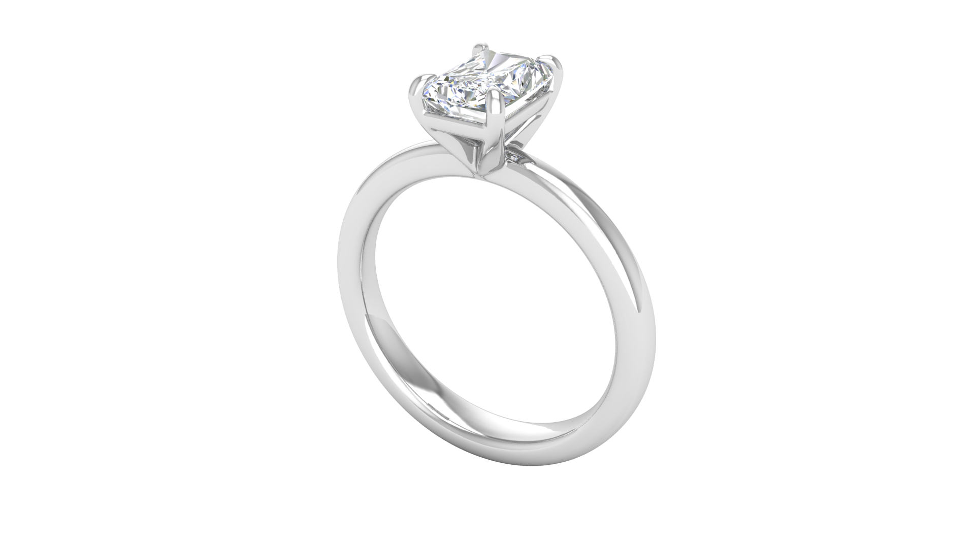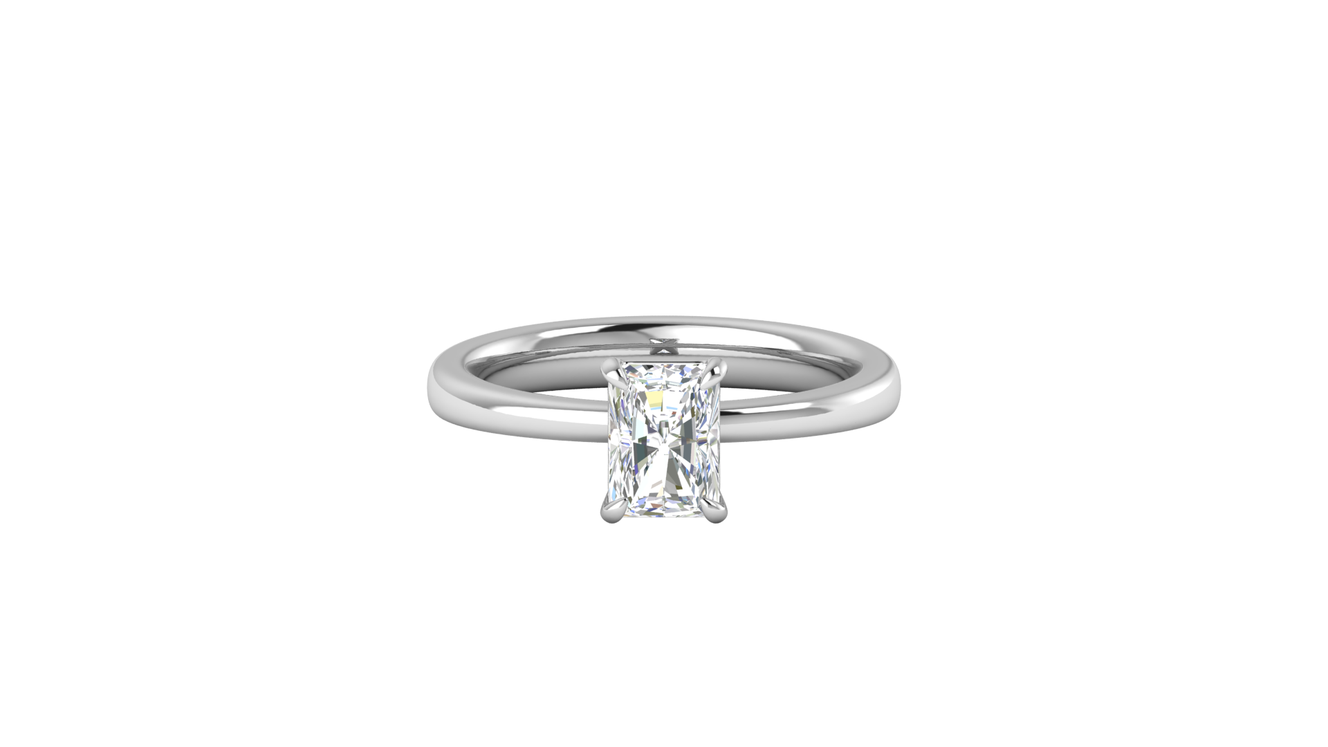 This classic solitaire engagement ring features a dazzling 1.00 CTW radiant-cut diamond, set in a sleek four-prong setting. The polished white gold band enhances the diamond's brilliance, creating a timeless piece that exudes modern elegance and understated beauty.