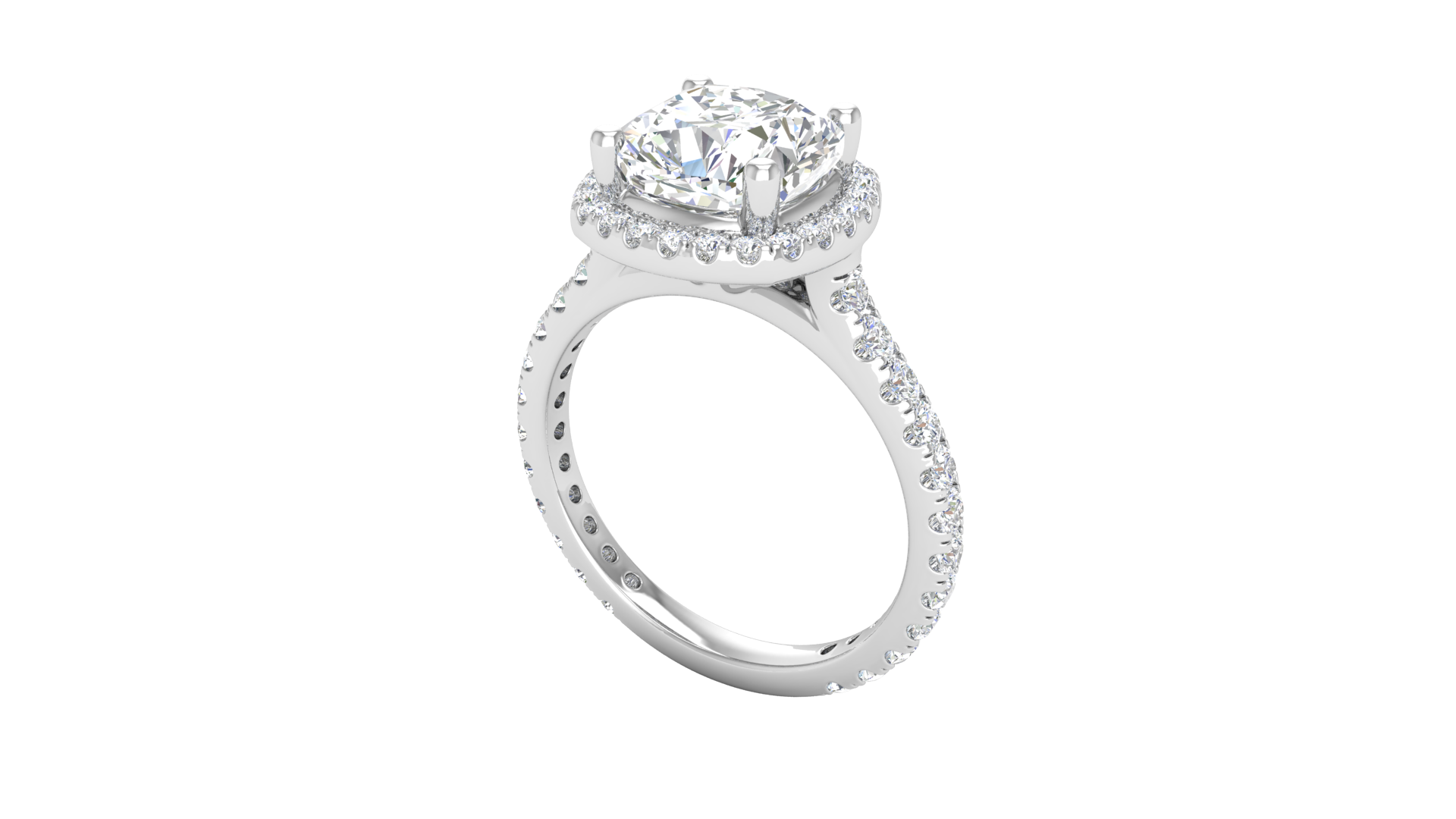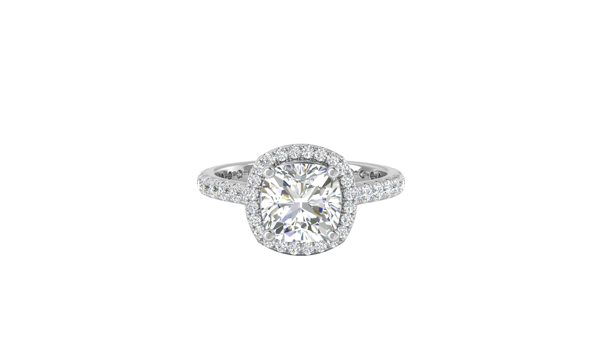 Experience unmatched brilliance with our 3-carat cushion-cut halo engagement ring. Featuring a stunning center diamond encircled by a sparkling halo and a pavé-set diamond band, this timeless design exudes elegance... Show More
