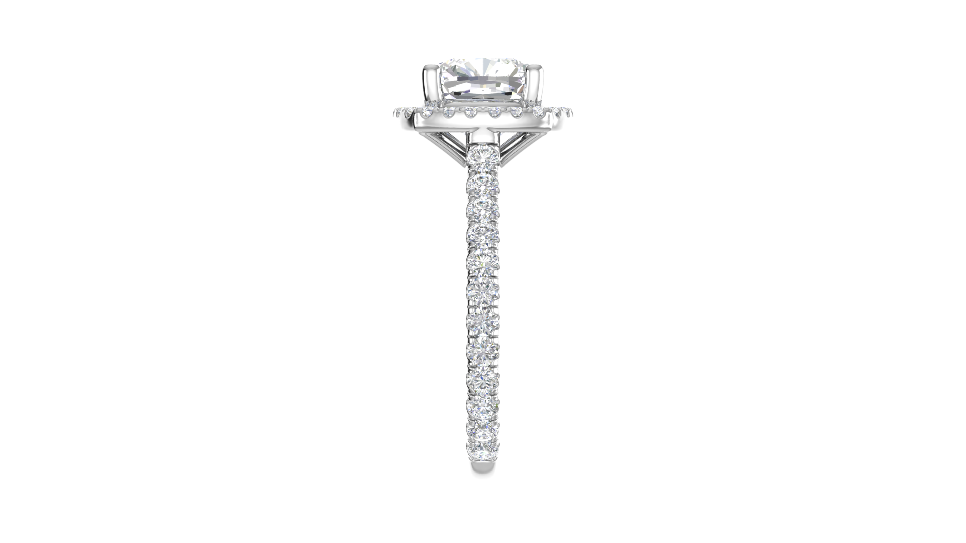 3 Carat Cushion-Cut Halo Engagement Ring With Pavé Diamond Band In 14K White Gold