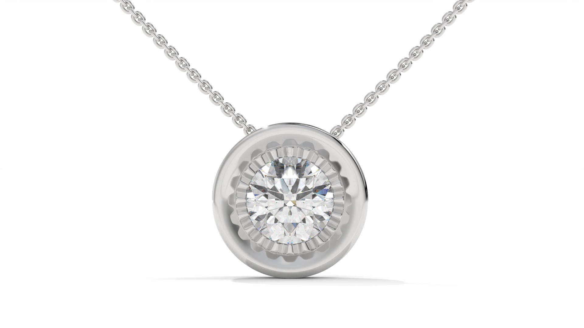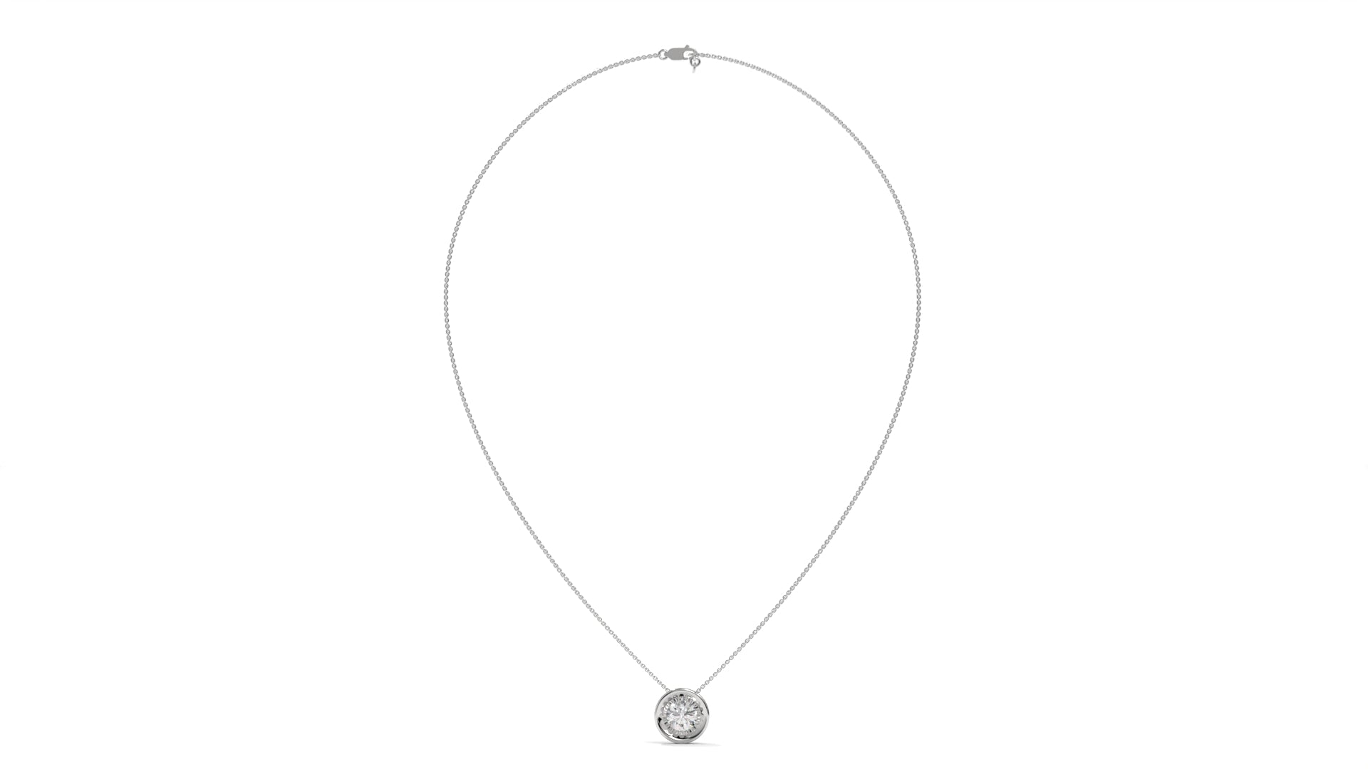 Featuring a total weight of 1.00 carat, this modern solitaire pendant in 14K white gold showcases a brilliant round-cut diamond in a sleek bezel setting. The clean, contemporary design pairs timeless elegance with a secure finish, making it perfect for daily wear or as a versatile gift for any special occasion.