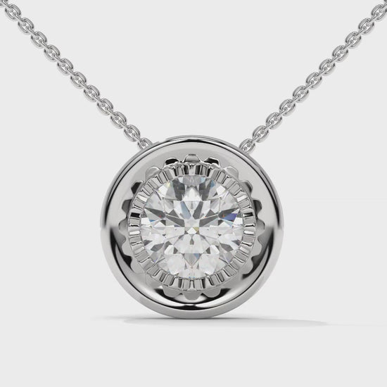 1.00 CTW Round Diamond Bezel-Set Solitaire Pendant in 14K White Gold
