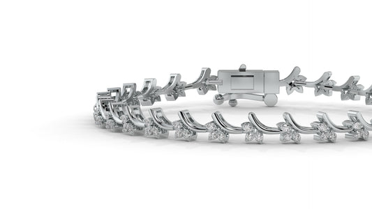0.72 CTW Round Diamond Bracelet in 14K White Gold – Floral Cluster Design