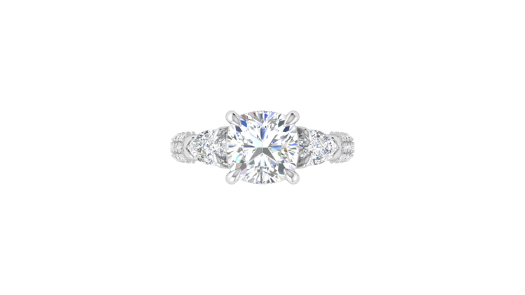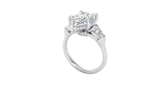 3 Carat Cushion-Cut Engagement Ring With Pear-Shaped Side Stones In 14K White Gold