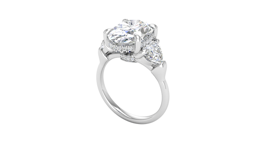 4 Carat Oval Cut Engagement Ring With Heart Shape Side Stones In 14K White Gold