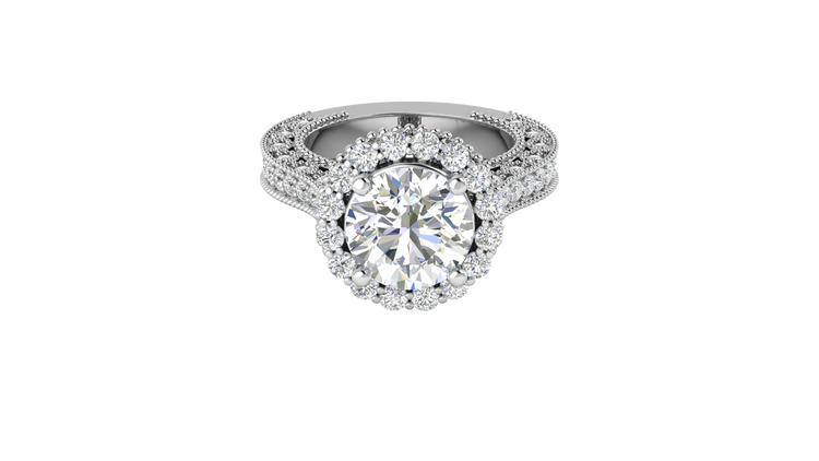 4 Carat Vintage Style Round Engagement Ring In 14K White Gold