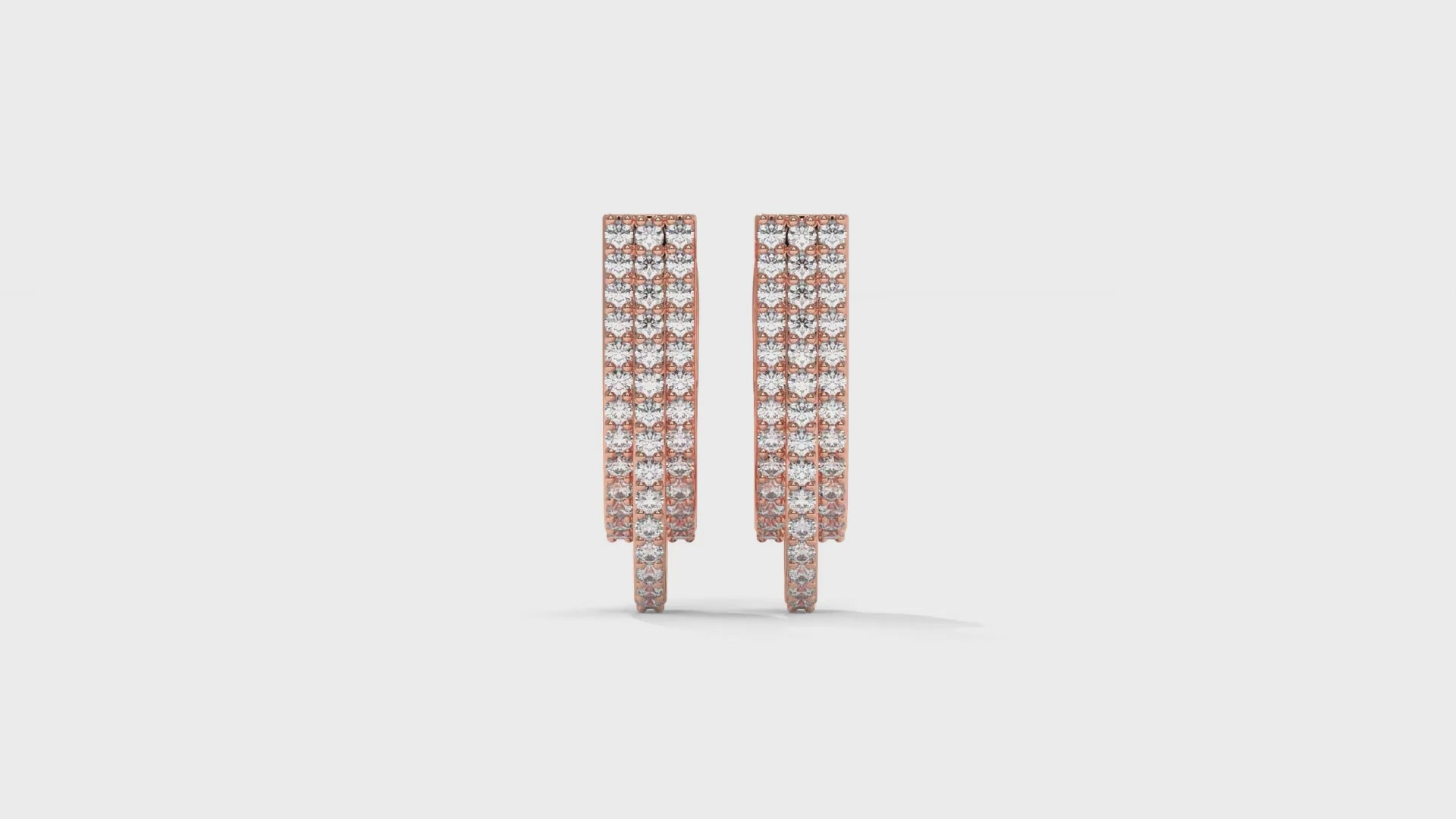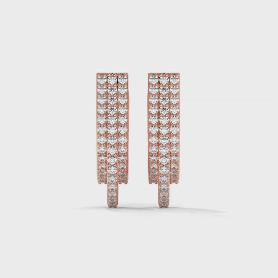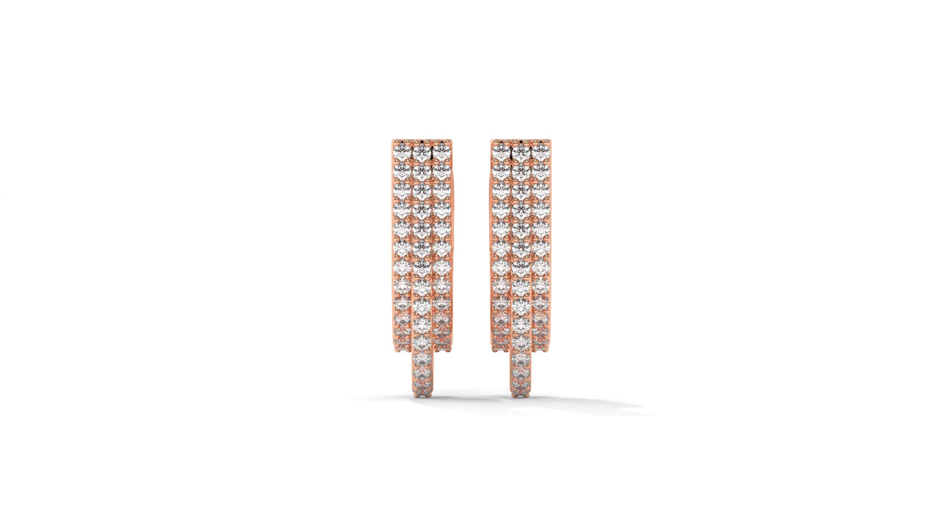 0.41 CTW Round Diamond Triple-Row Hoop Earrings in 14K Rose Gold – Pavé Setting