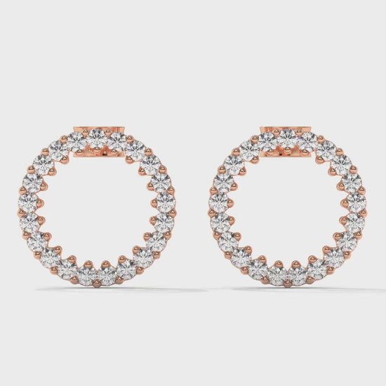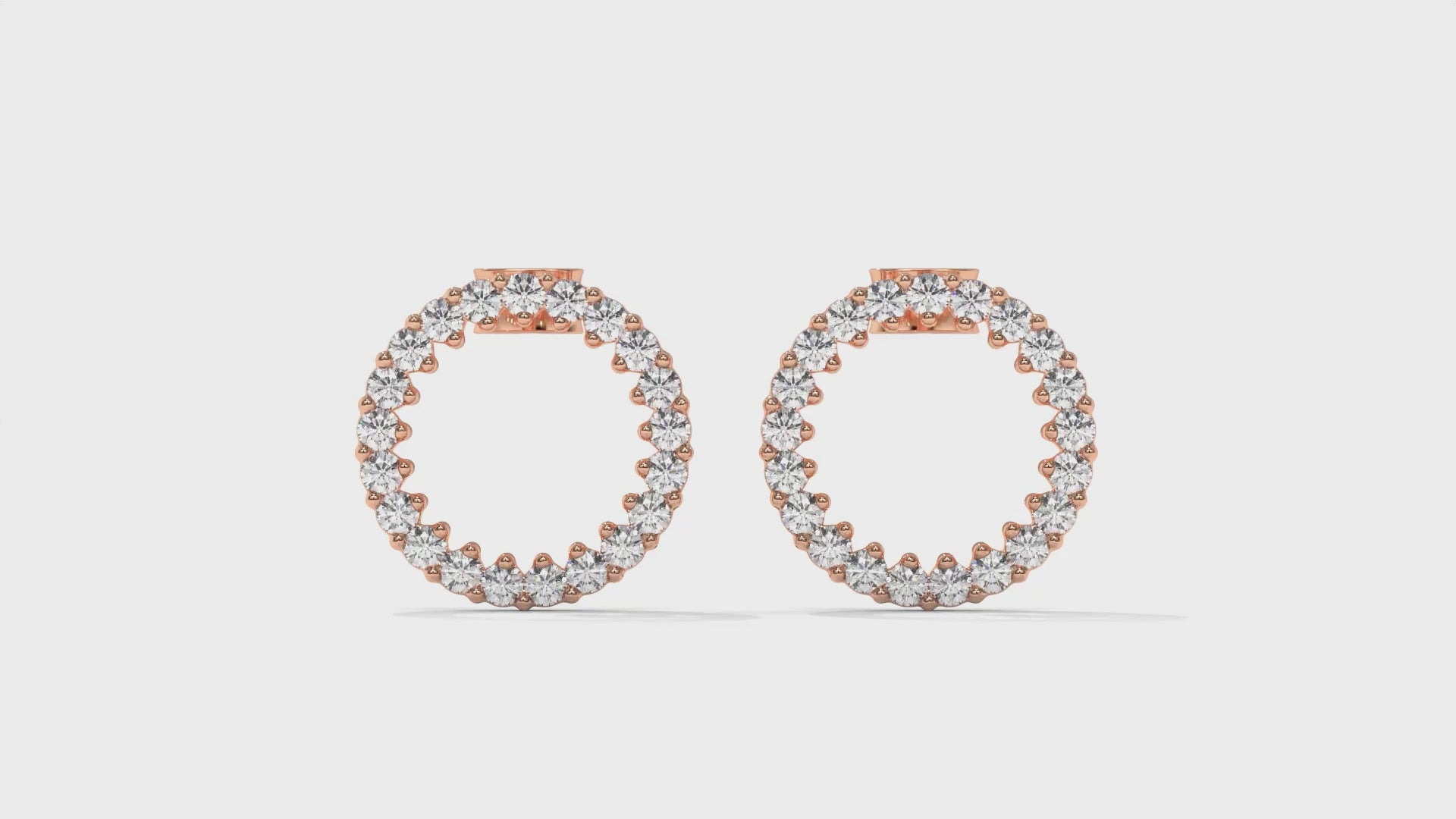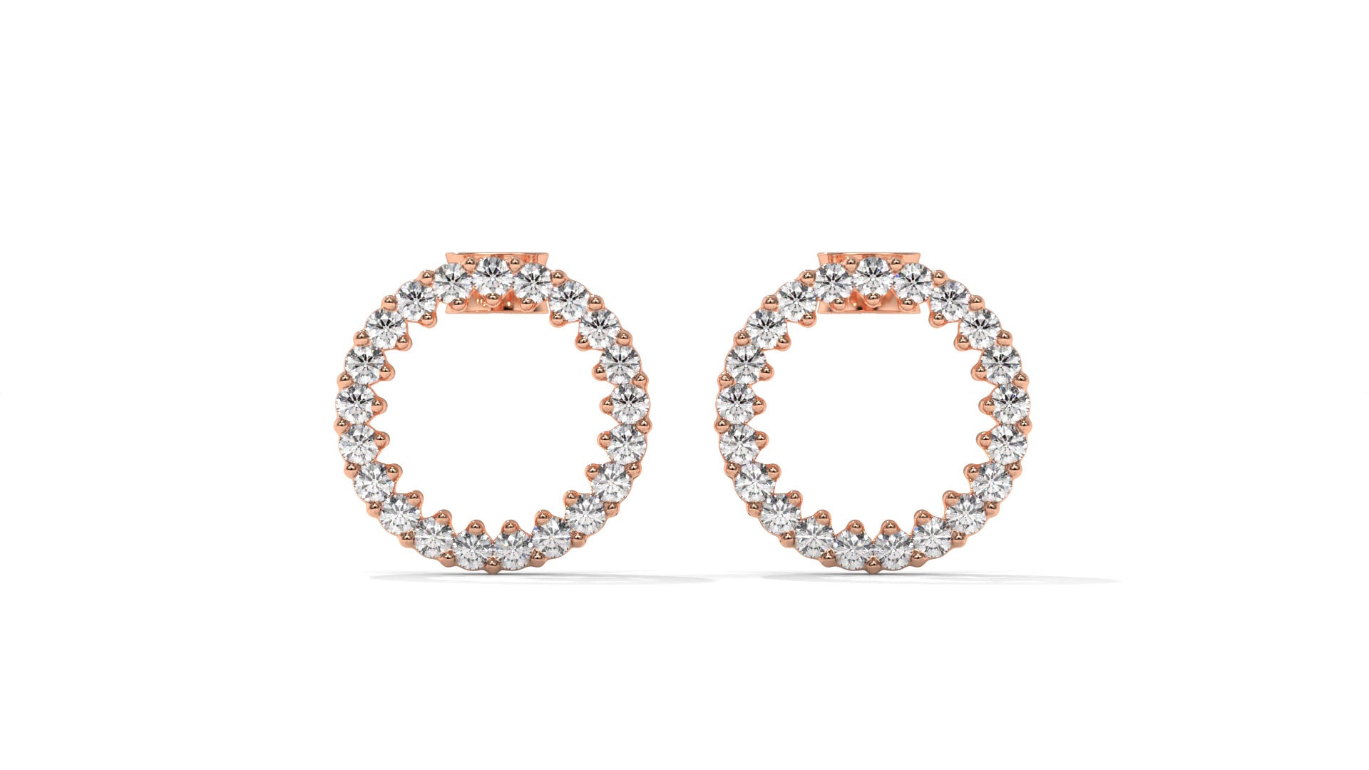 Featuring a total weight of 0.42 carats, these elegant 14K rose gold earrings are crafted in a modern open-circle hoop design. Each earring is adorned with brilliant round diamonds in a secure prong setting, offering a delicate sparkle that makes them perfect for both everyday wear and special occasions.