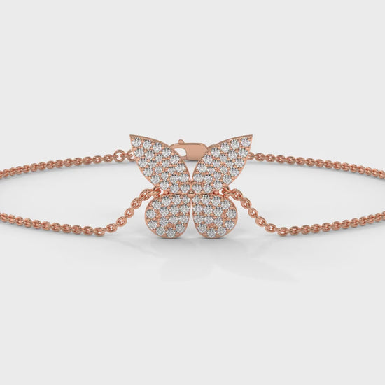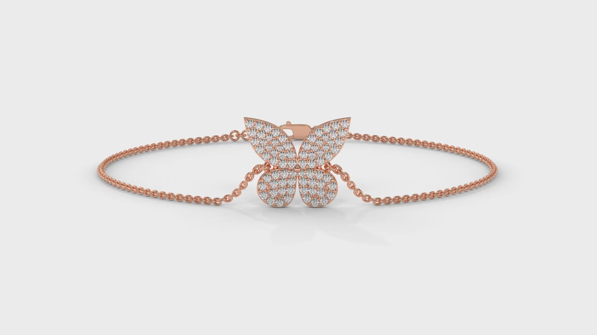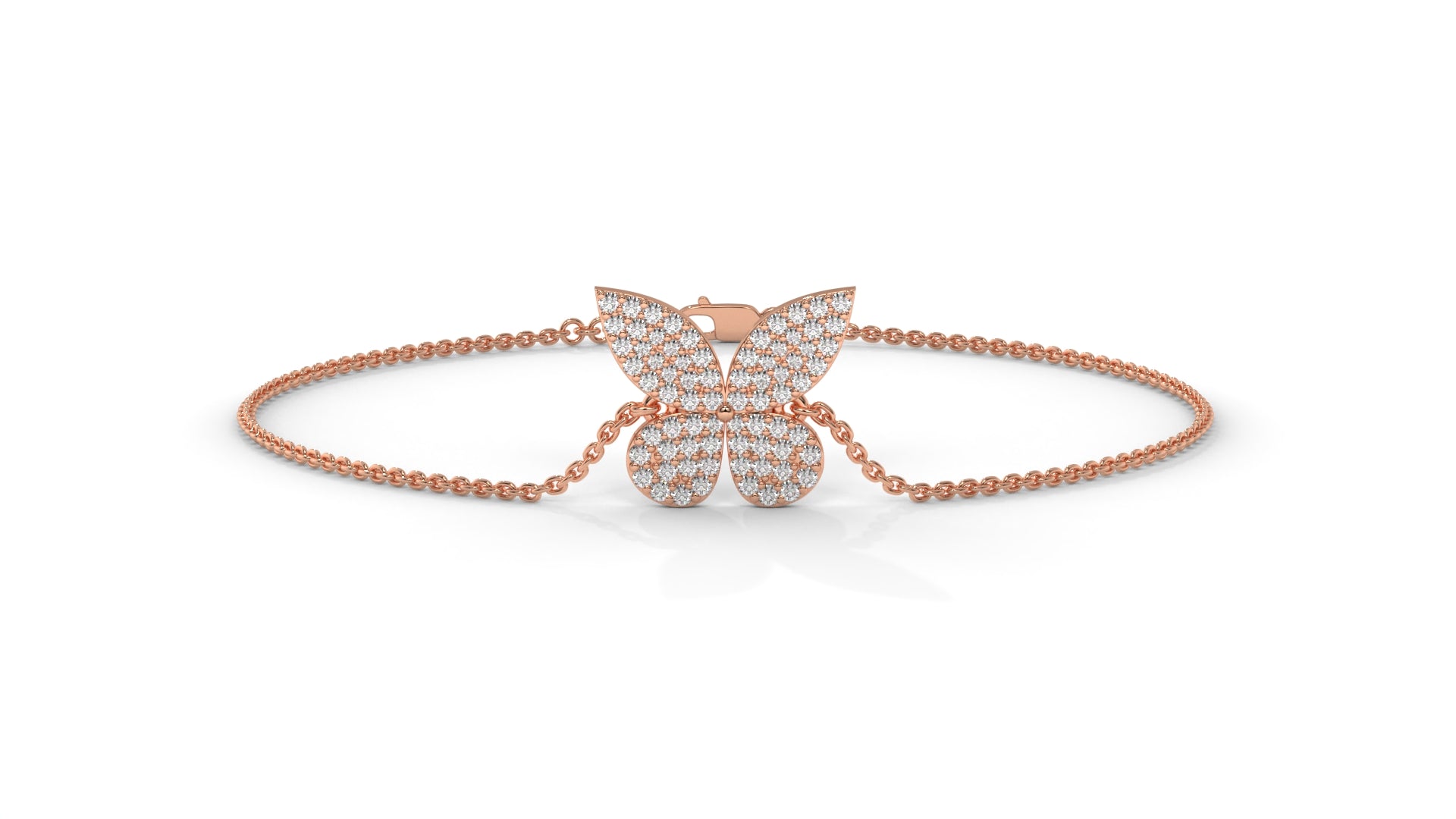 0.43 CTW Diamond Butterfly Bracelet in 14K Rose Gold – Pavé Butterfly Design