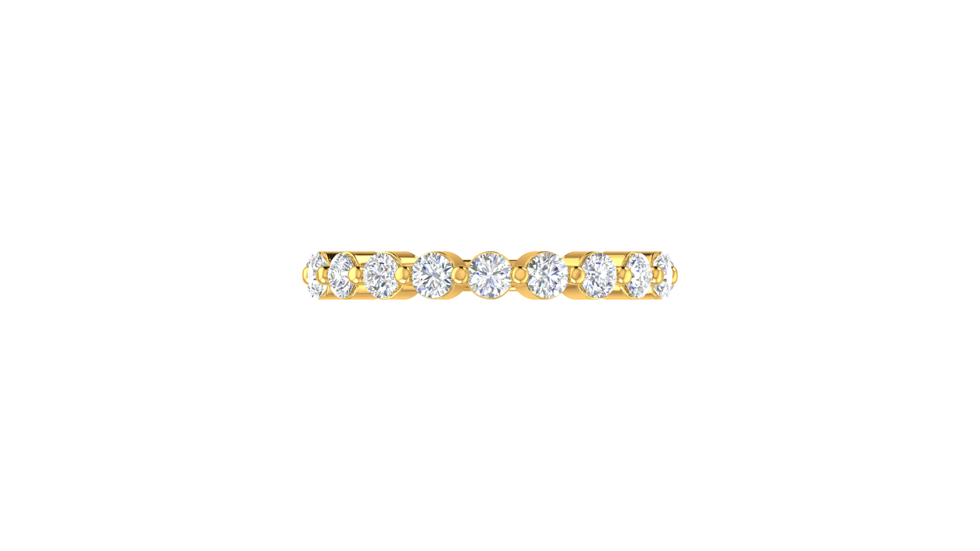 This exquisite wedding band is a modern twist on timeless elegance. Featuring a continuous row of brilliant round diamonds, each individually encased in a sleek bezel setting, this ring radiates sophistication and brilliance. The contemporary design not only enhances the sparkle of each stone but also provides a secure and seamless finish, making it perfect for daily wear or special occasions. Symbolizing everlasting love, this ring is an ideal choice for anniversaries, weddings, or as a statement of eternal devotion. Crafted in white gold, it’s a masterpiece of beauty and durability.