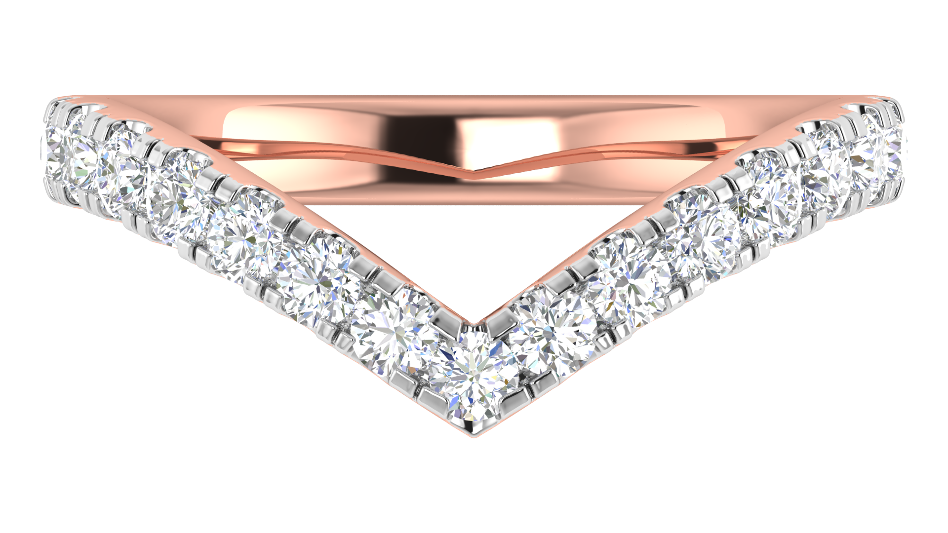 0.68 Ctw Elegant Diamond Chevron Ring Set In 14K Rose Gold