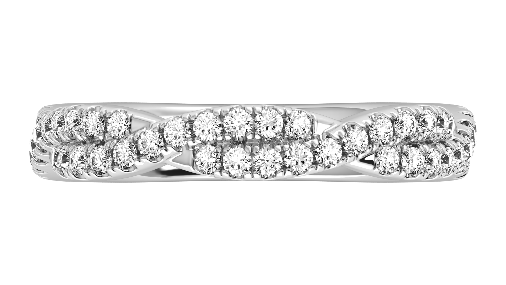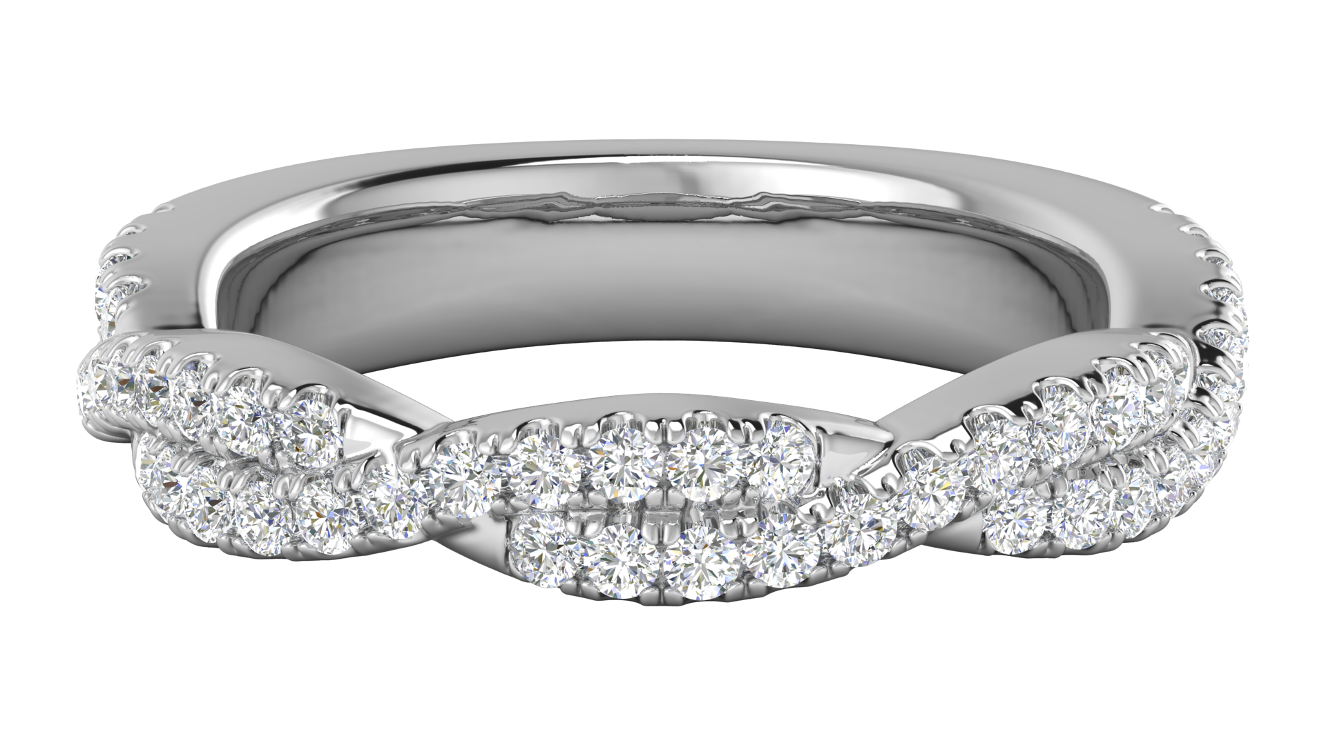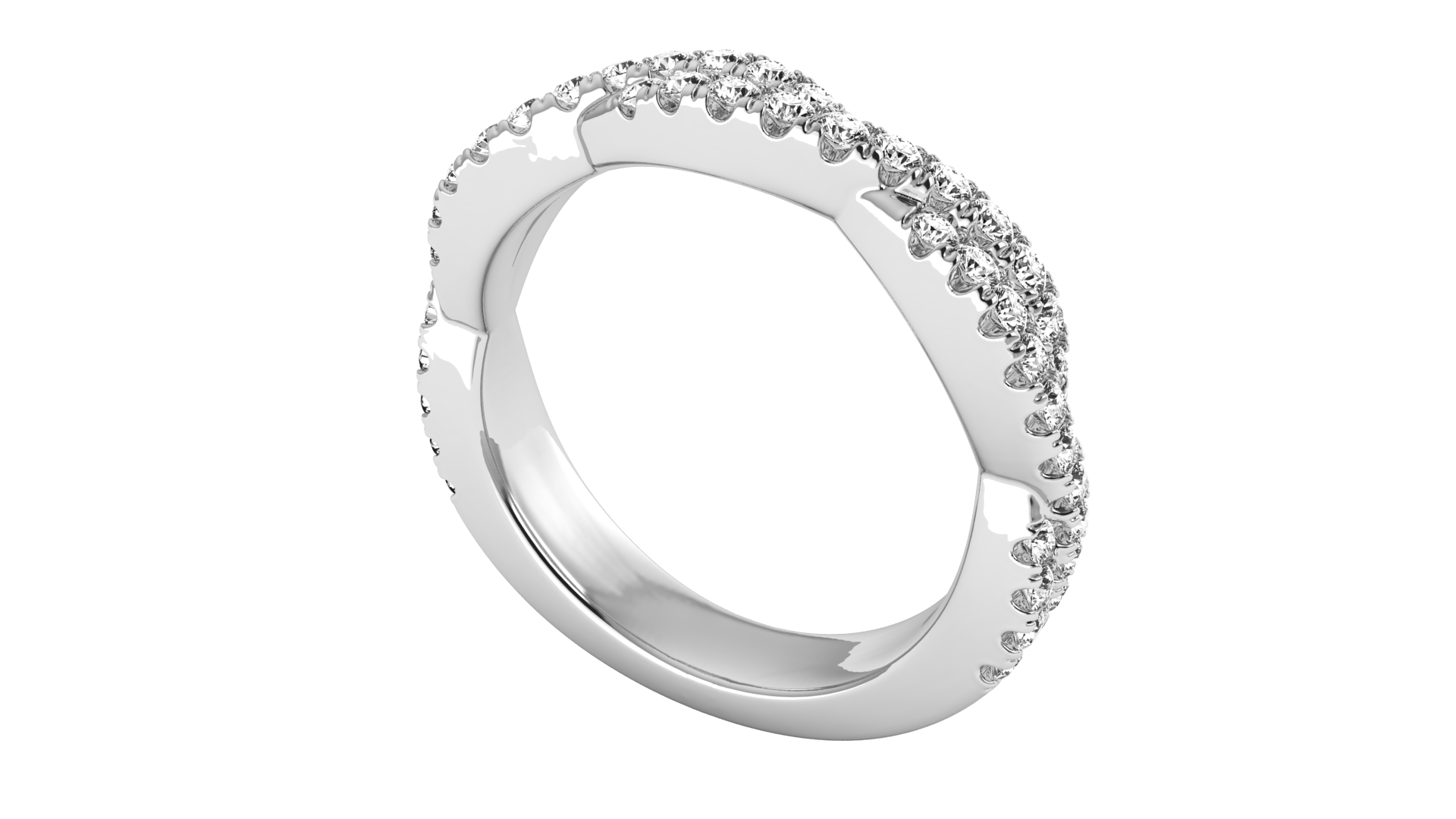 Celebrate eternal love with this stunning infinity diamond ring. Featuring a delicately intertwined band design adorned with brilliant round-cut diamonds, this ring exudes elegance and timeless beauty. Crafted from polished white gold. its sparkling accents symbolize an unending bond, making it the perfect choice for anniversaries, milestones, or special occasions. A radiant piece of jewelry that combines sophistication with heartfelt meaning.