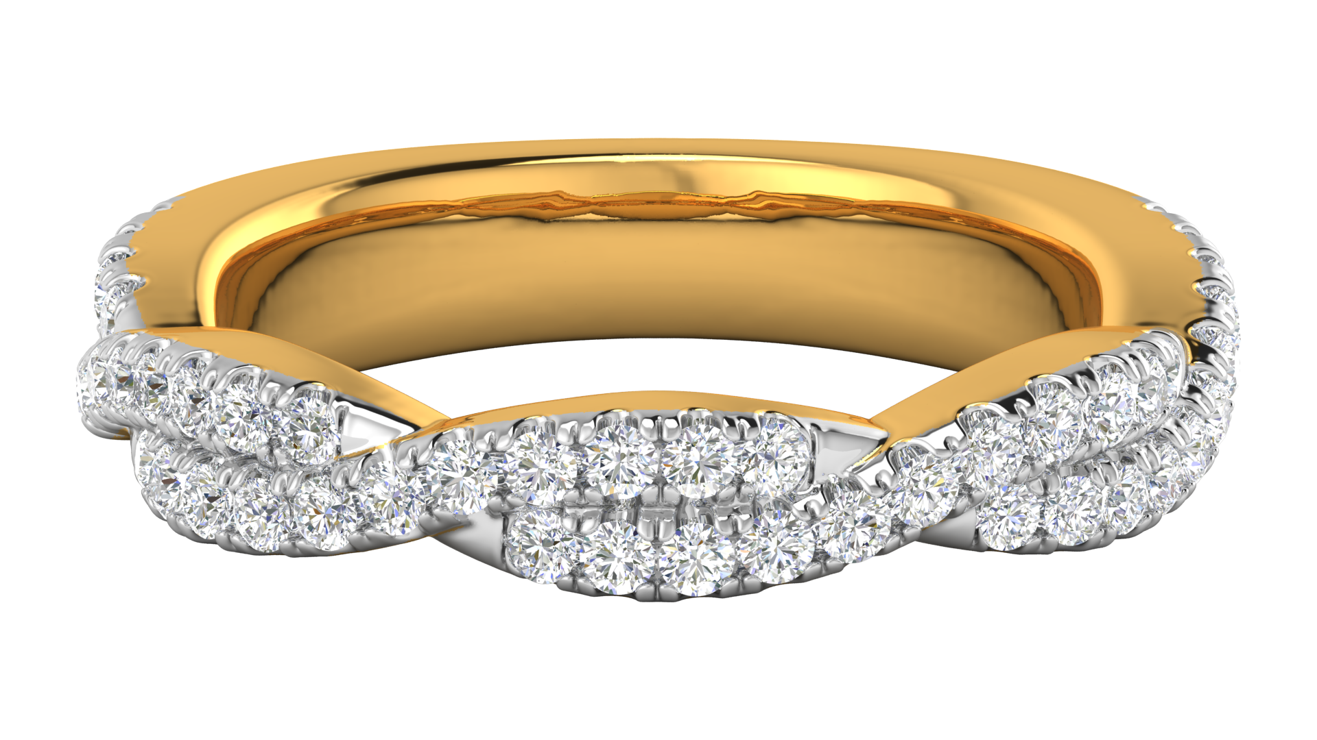 Celebrate eternal love with this stunning infinity diamond ring. Featuring a delicately intertwined band design adorned with brilliant round-cut diamonds, this ring exudes elegance and timeless beauty. Crafted from polished yellow gold. its sparkling accents symbolize an unending bond, making it the perfect choice for anniversaries, milestones, or special occasions. A radiant piece of jewelry that combines sophistication with heartfelt meaning.