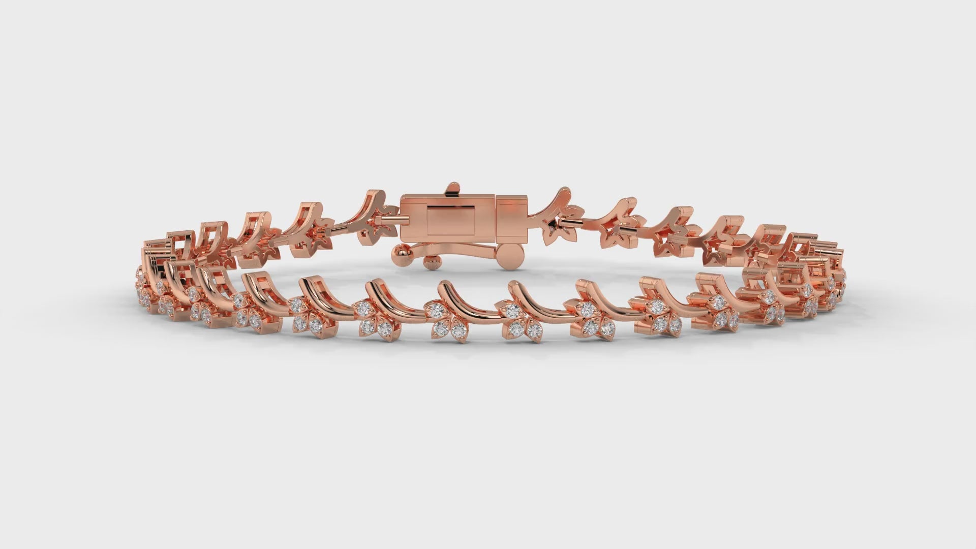 0.72 CTW Round Diamond Bracelet in 14K Rose Gold – Floral Cluster Design
